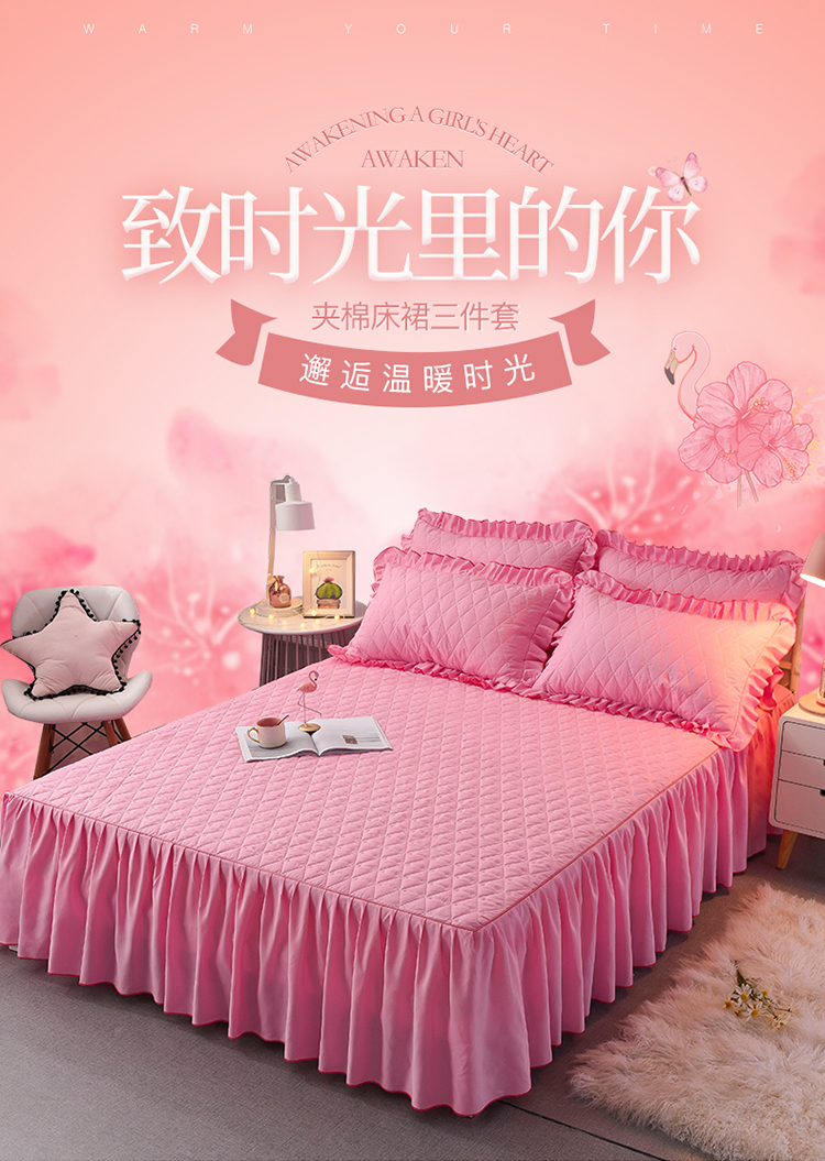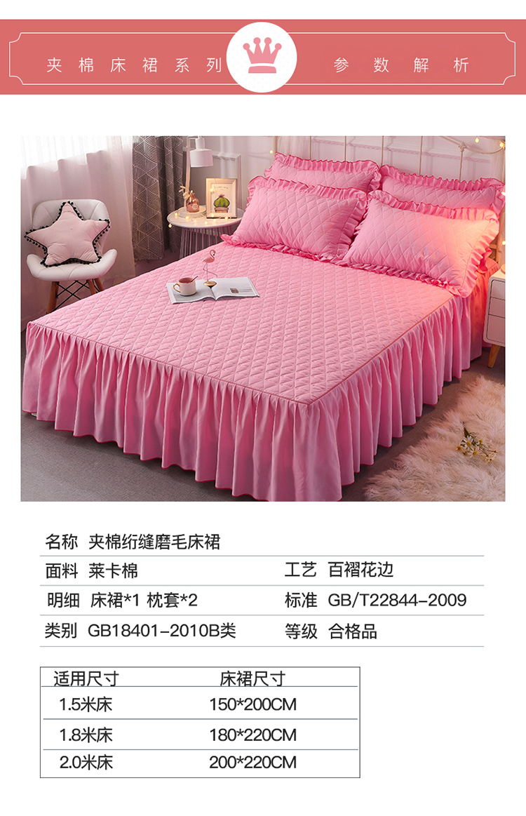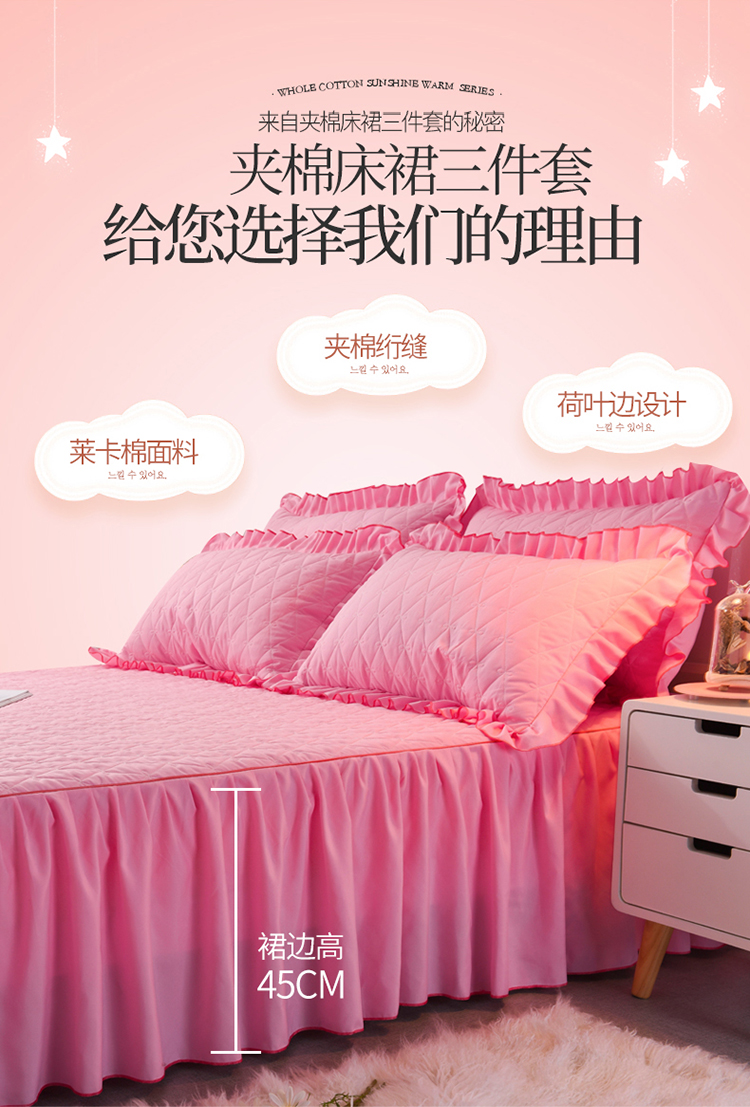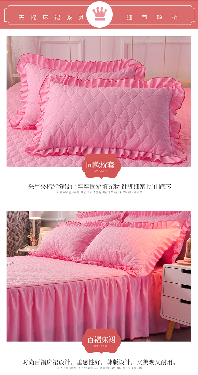 商品名称:艾晶美 2018冬款夹棉床裙三件套 丛林烈鸟-粉色