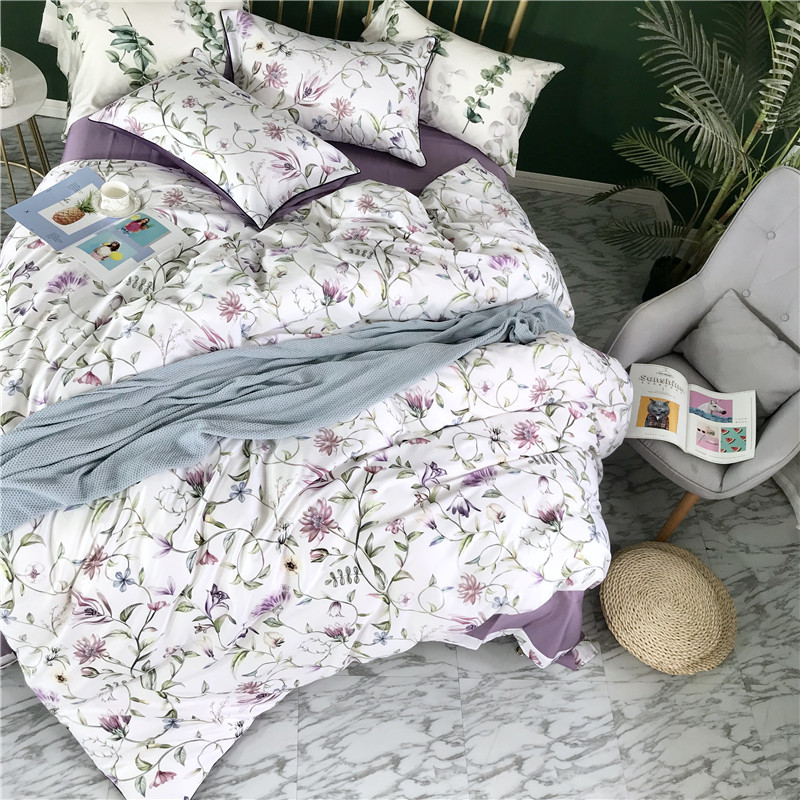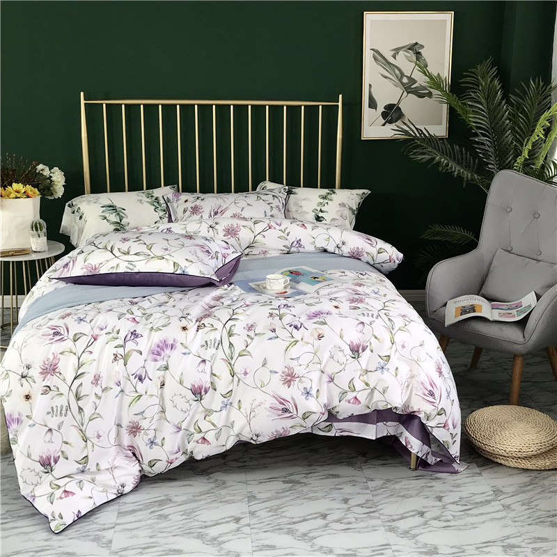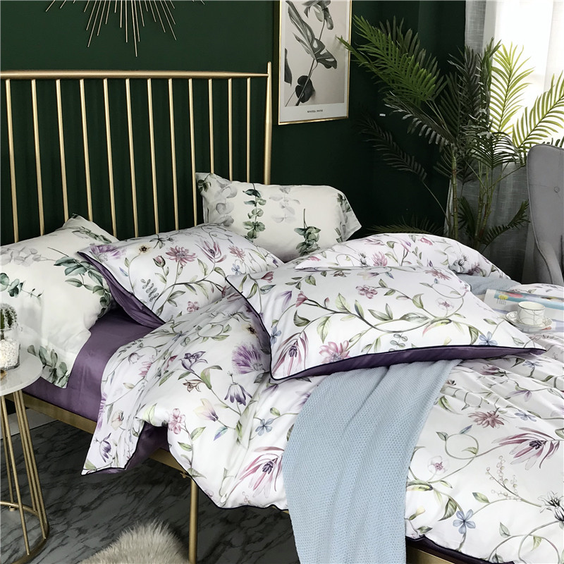 优然居家纺 2019春新款数码印花四件套紫色风藤