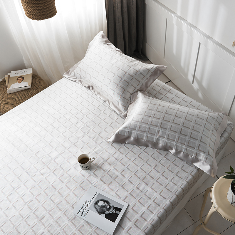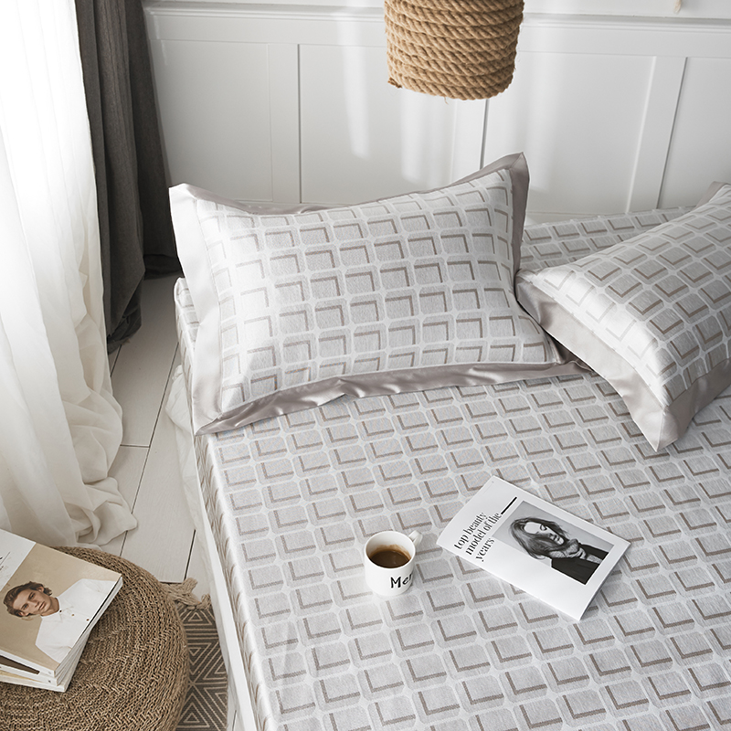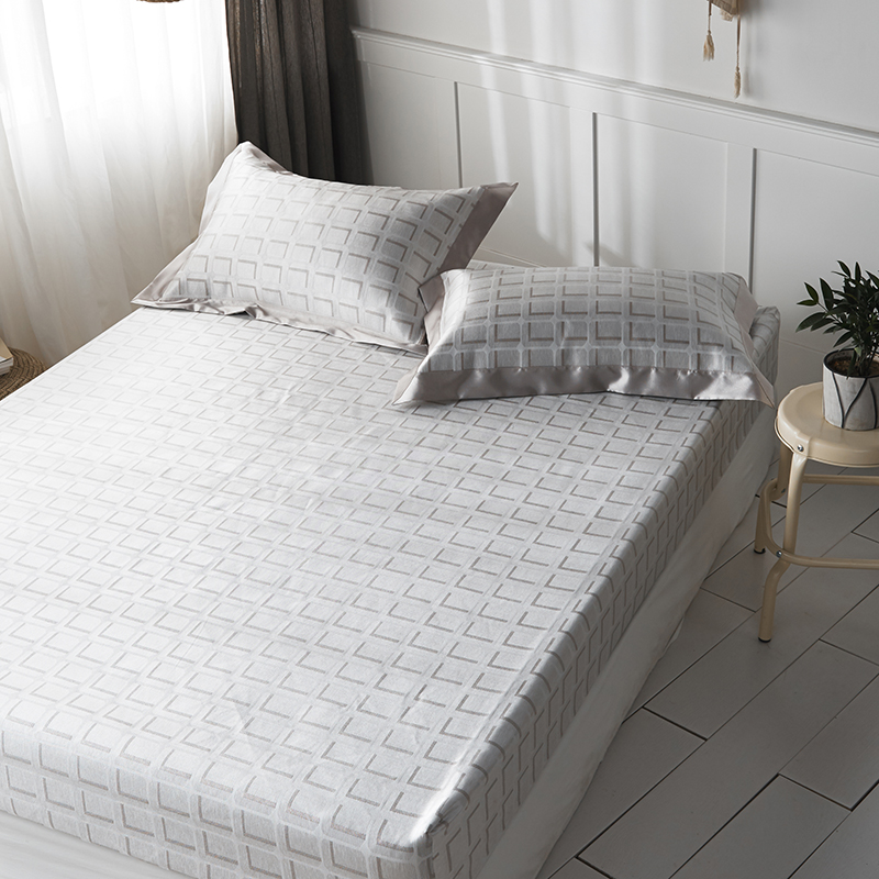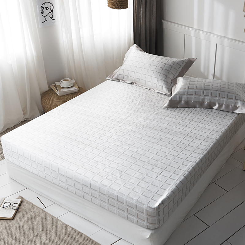 商品名称:本希 提花床笠款水洗养生席三件套 银格