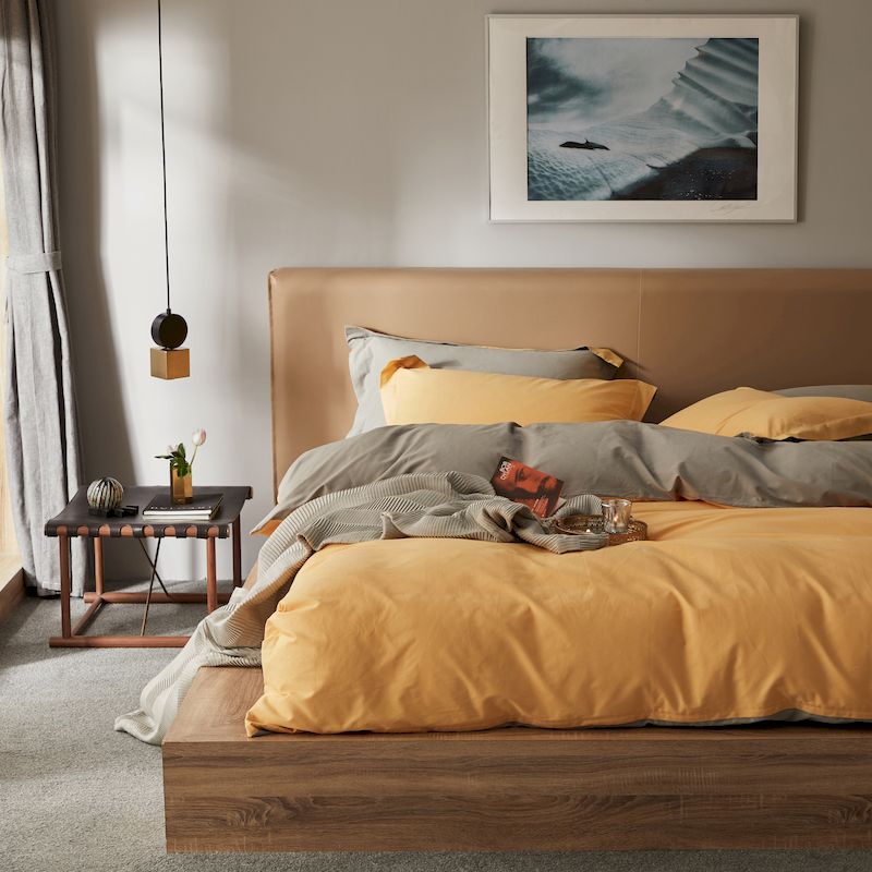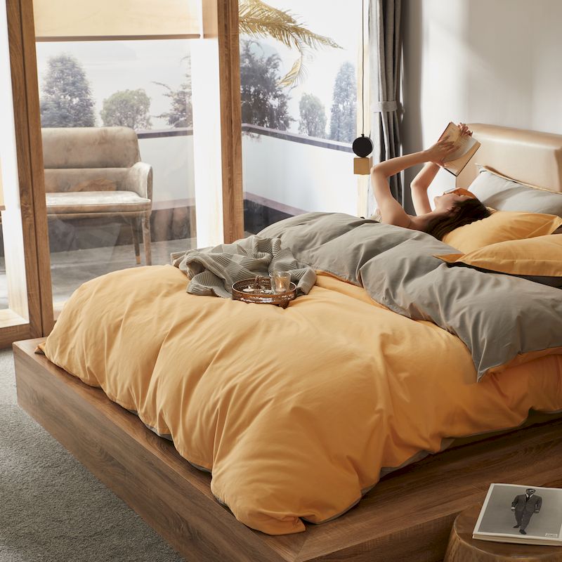 涞澳家纺 2019新款50磨绒双拼四件套 子黄银