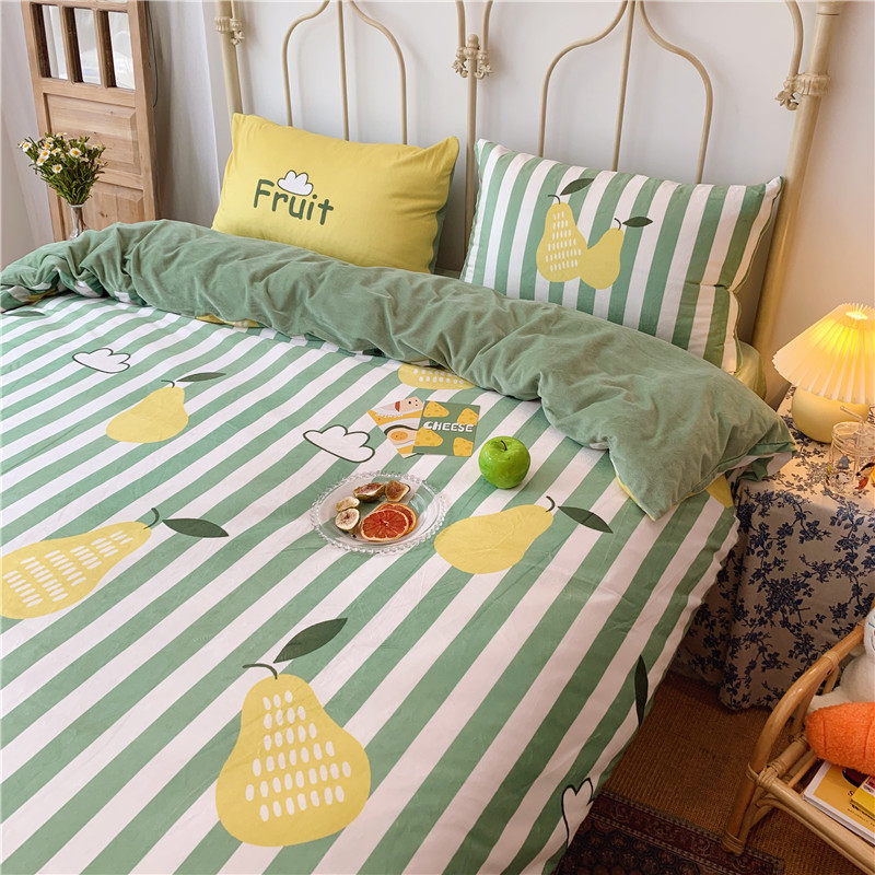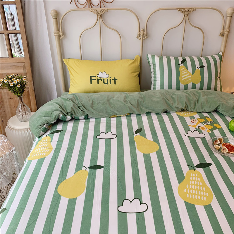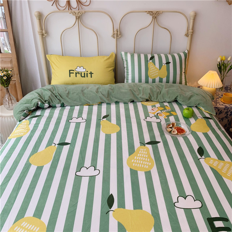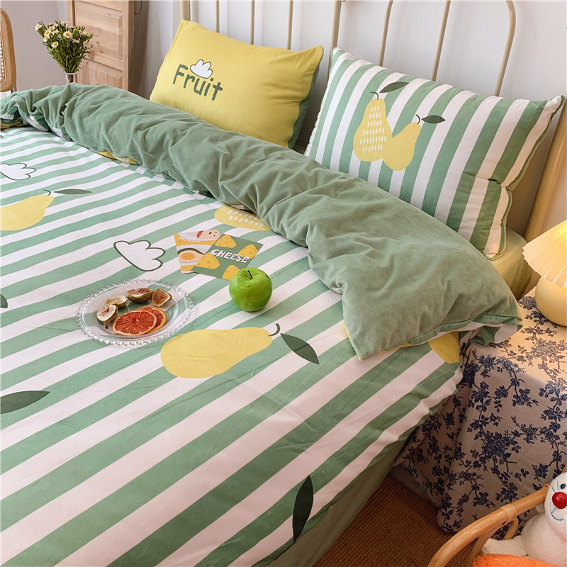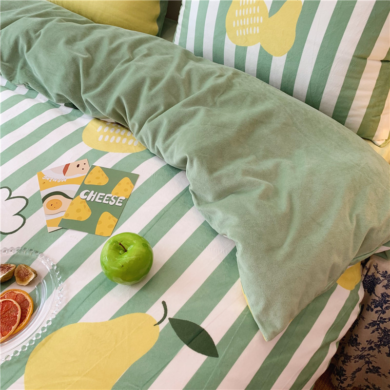 商品名称:昔可 2019新款设计师款韩国宝宝绒大版四件套 条纹雪梨