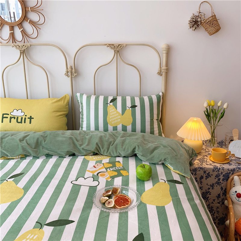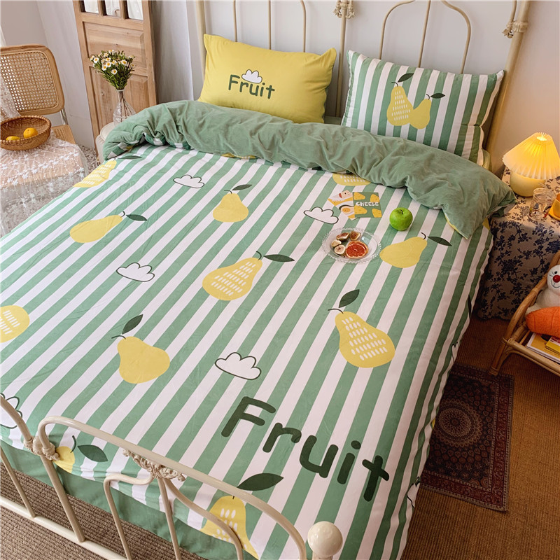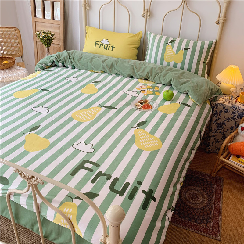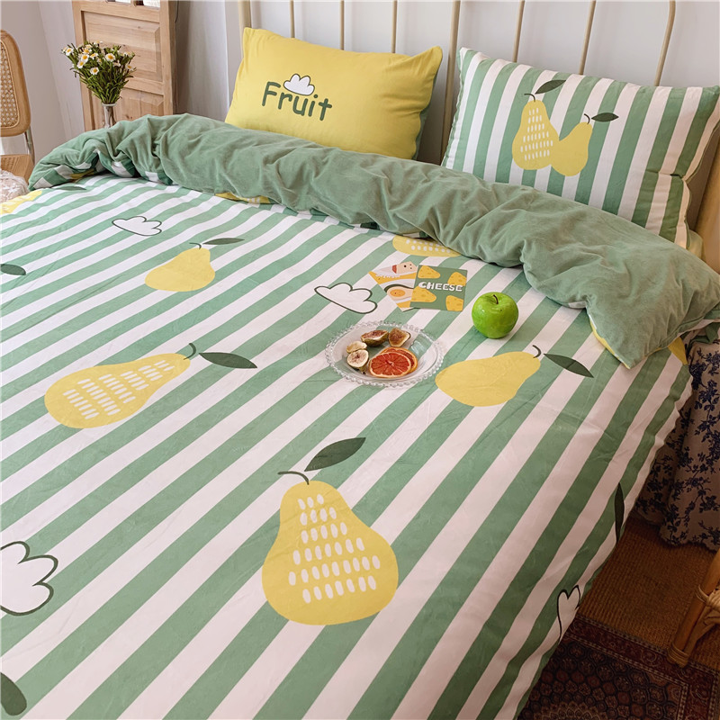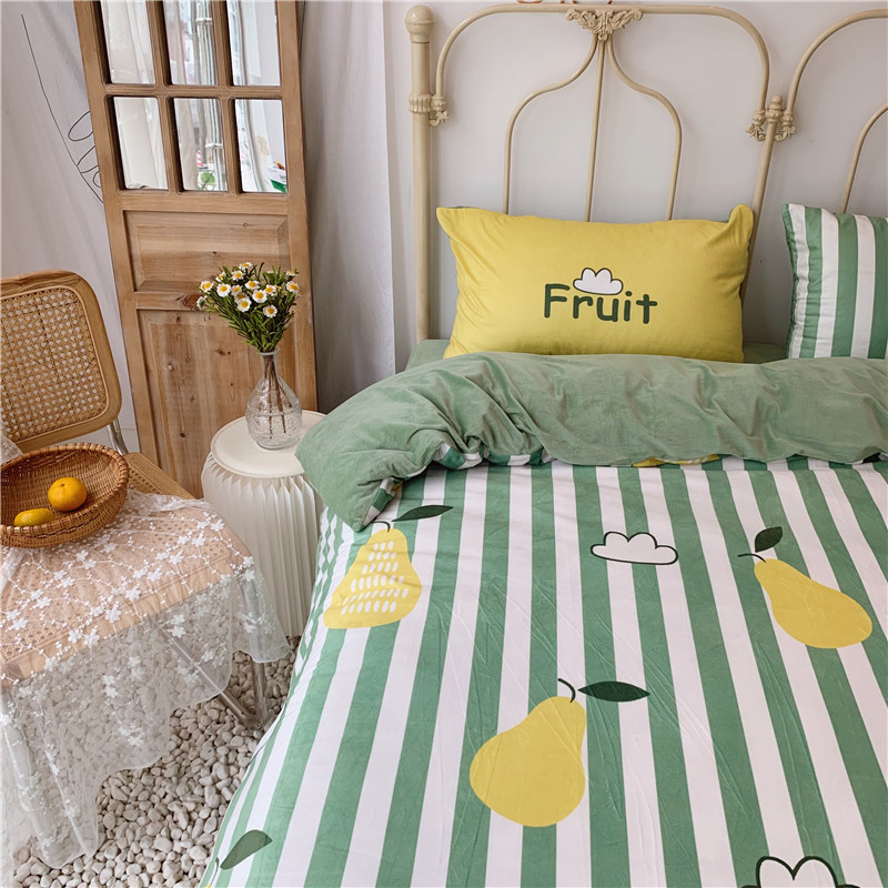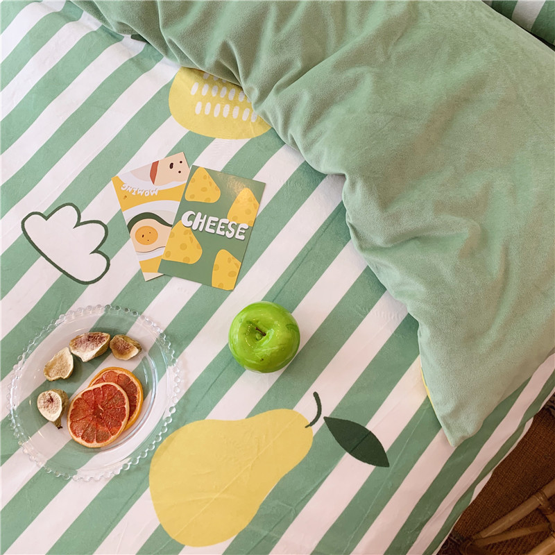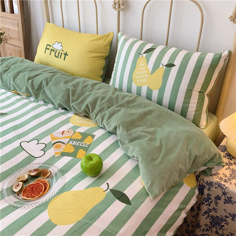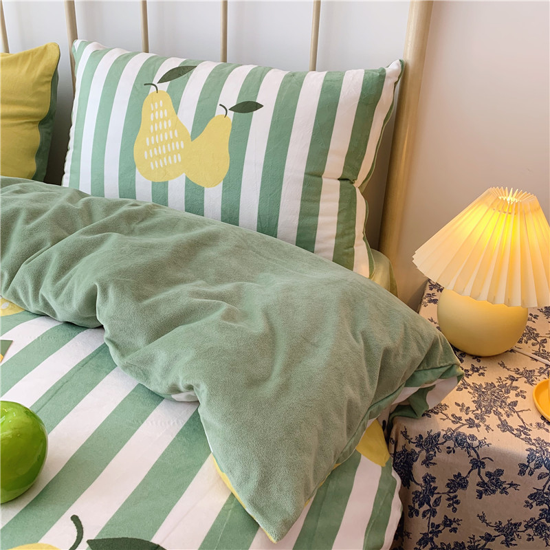 昔可 2019新款设计师款韩国宝宝绒大版四件套 条纹雪梨