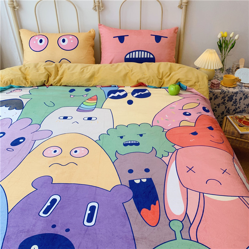 商品名称:昔可 2019新款设计师款韩国宝宝绒大版四件套 好多萌物