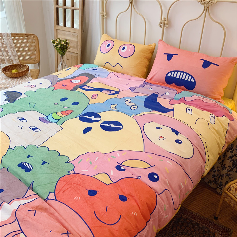 (总)昔可 2023新款学生季卡通普通款四件套,彩色气球熊,彩条恐龙,憨憨熊,花蜜小兔,蘑菇兔,圈圈草莓,蔬菜小兔,郁金香小萌狗
