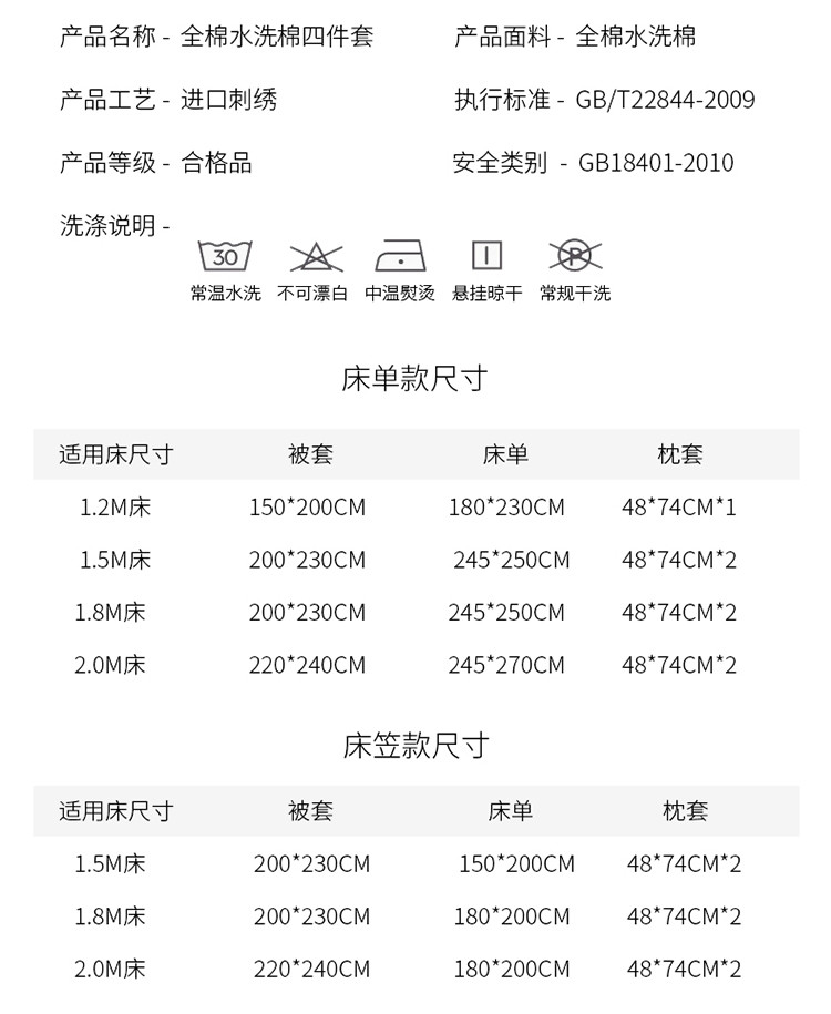 1.8m床笠款被套220*240cm | ¥180.00 |