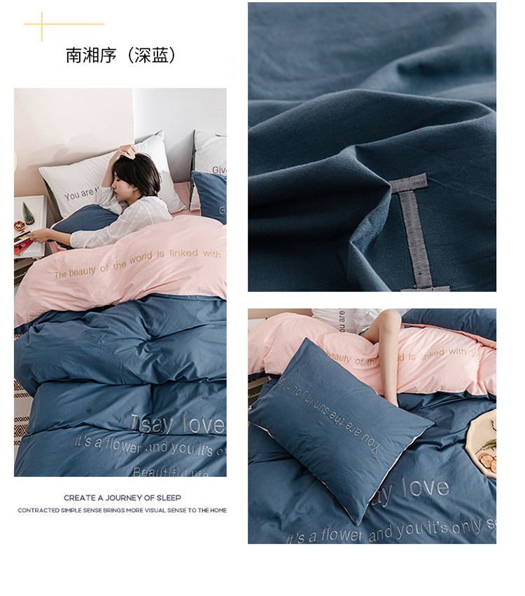 当前位置: 91家纺网 > 商品网购 > 床品套件 > 四件套 > 全棉普通四件套 > 北纬27度 2020全棉水洗棉四件套 南湘序(深蓝)