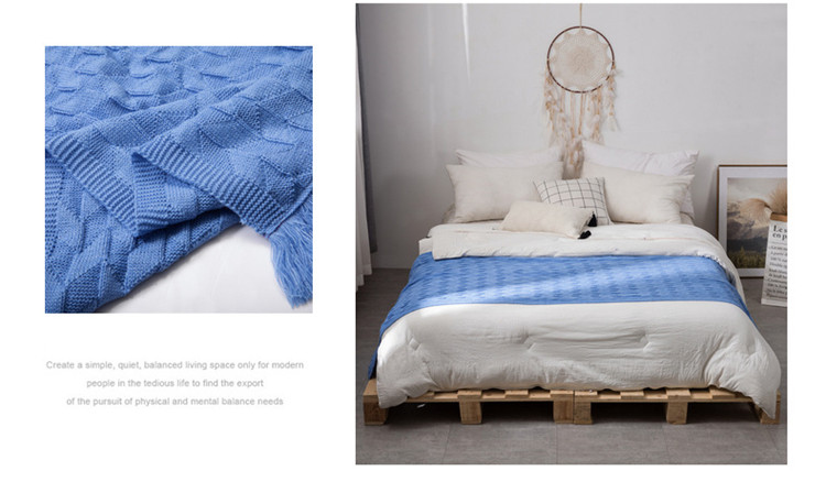 商品名称:暖绵绵 新品森奇床尾毯针织毯子线毯 暗蓝