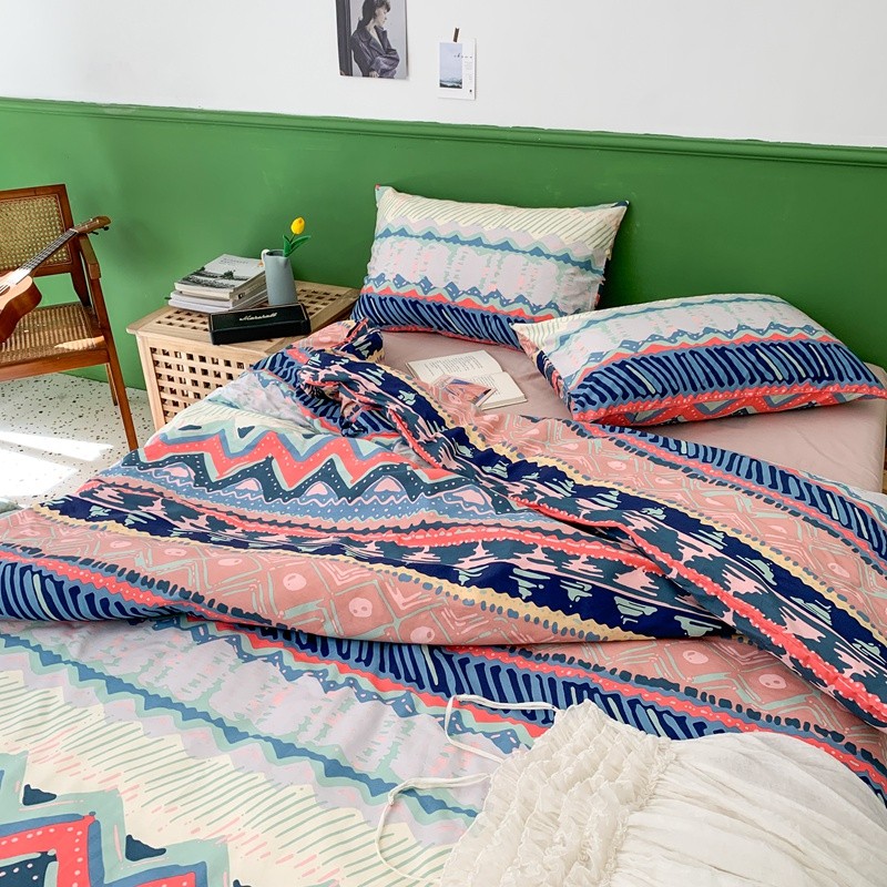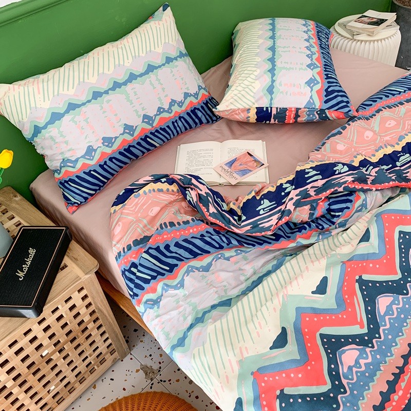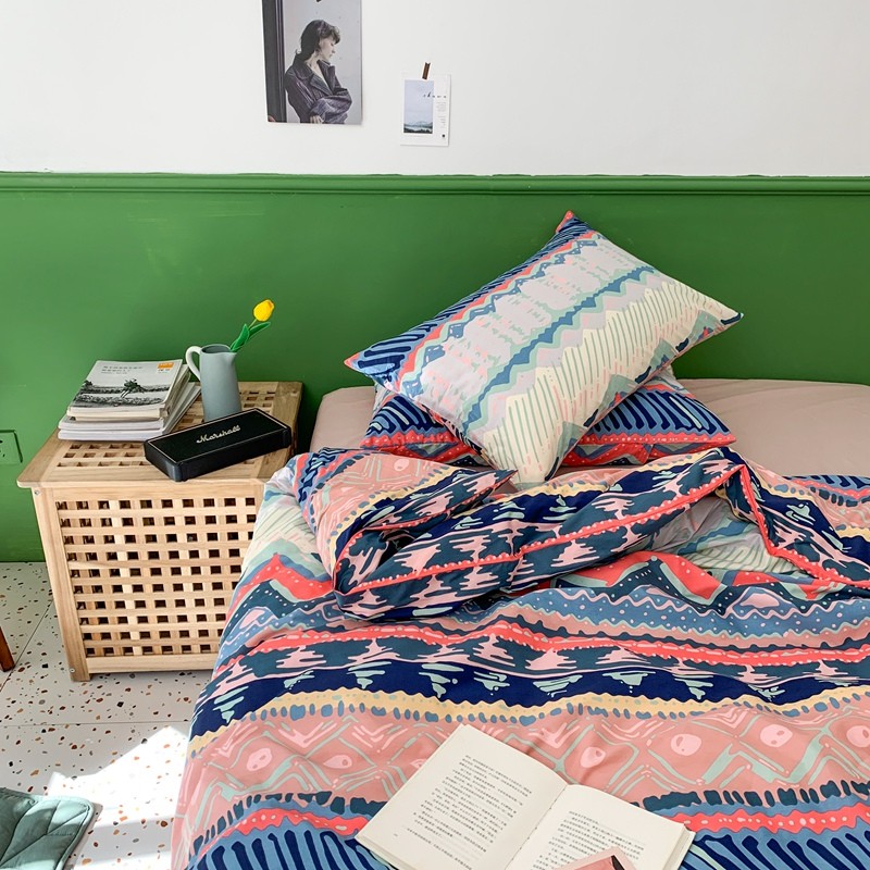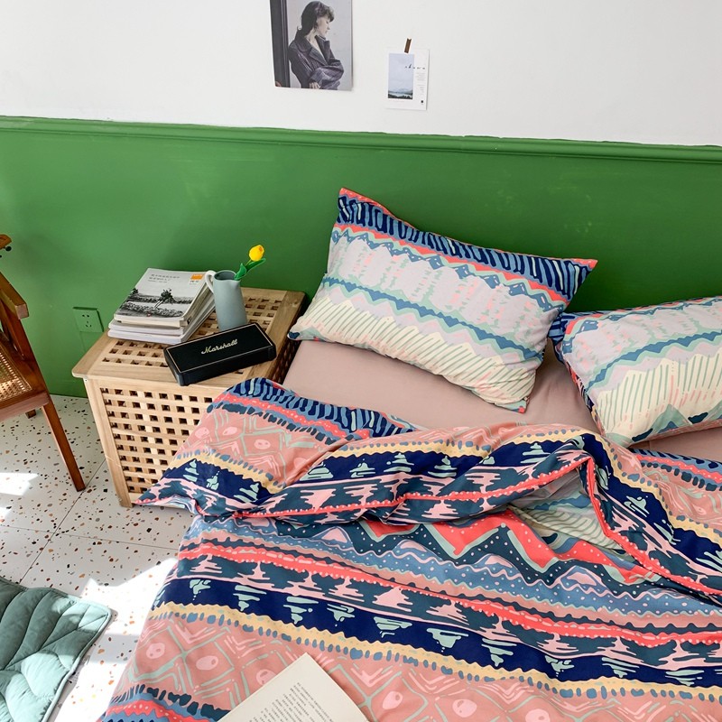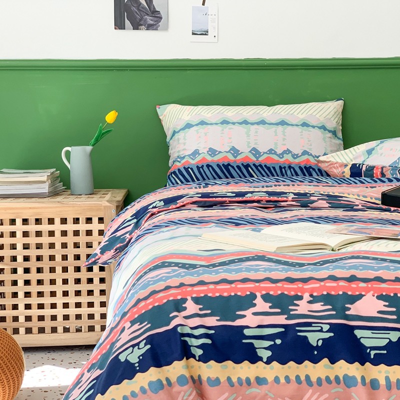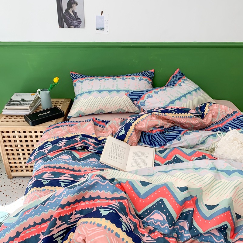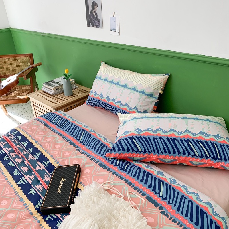 (总)时年2022新款全棉40支13372ins条纹款四件套,复古钴蓝,复古奶绿