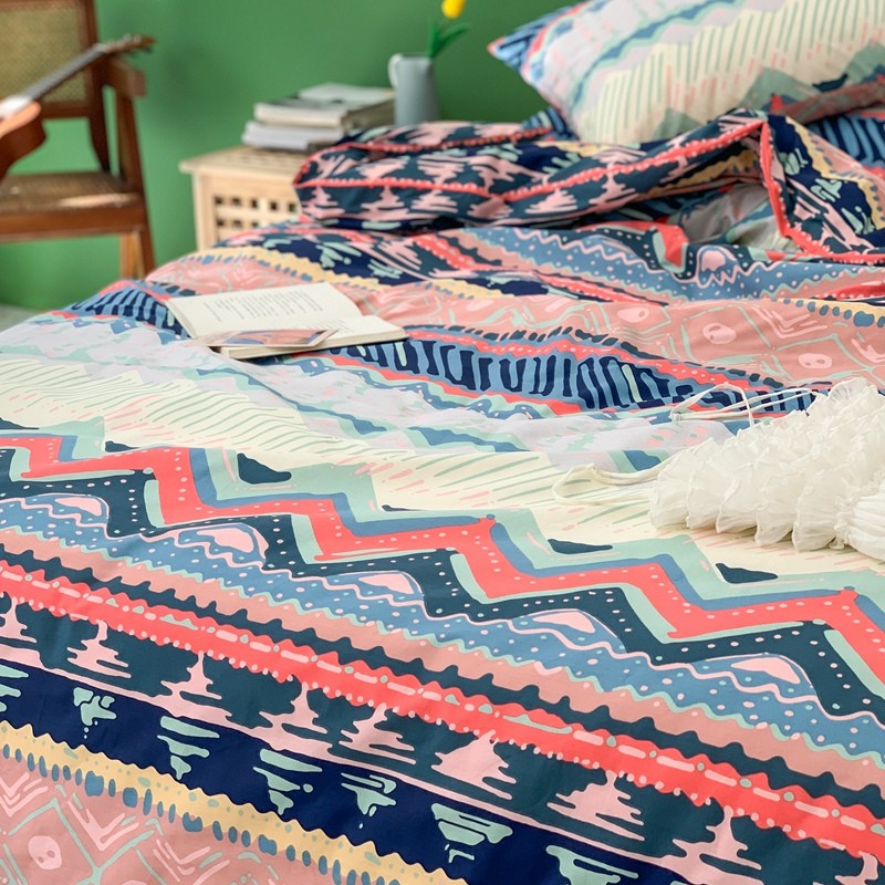 (总)时年家纺 2025新款全棉纯棉生态磨毛嵌绳款系列四件套,绿光森林,星光彩虹,芝士蘑菇