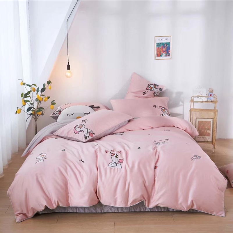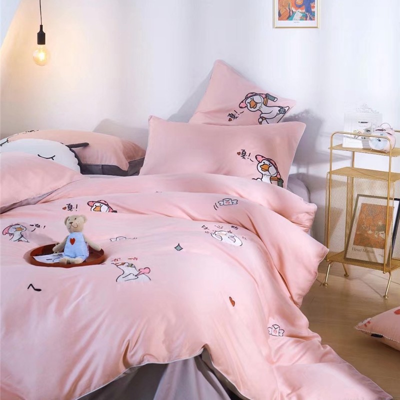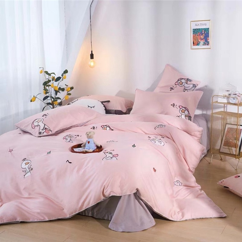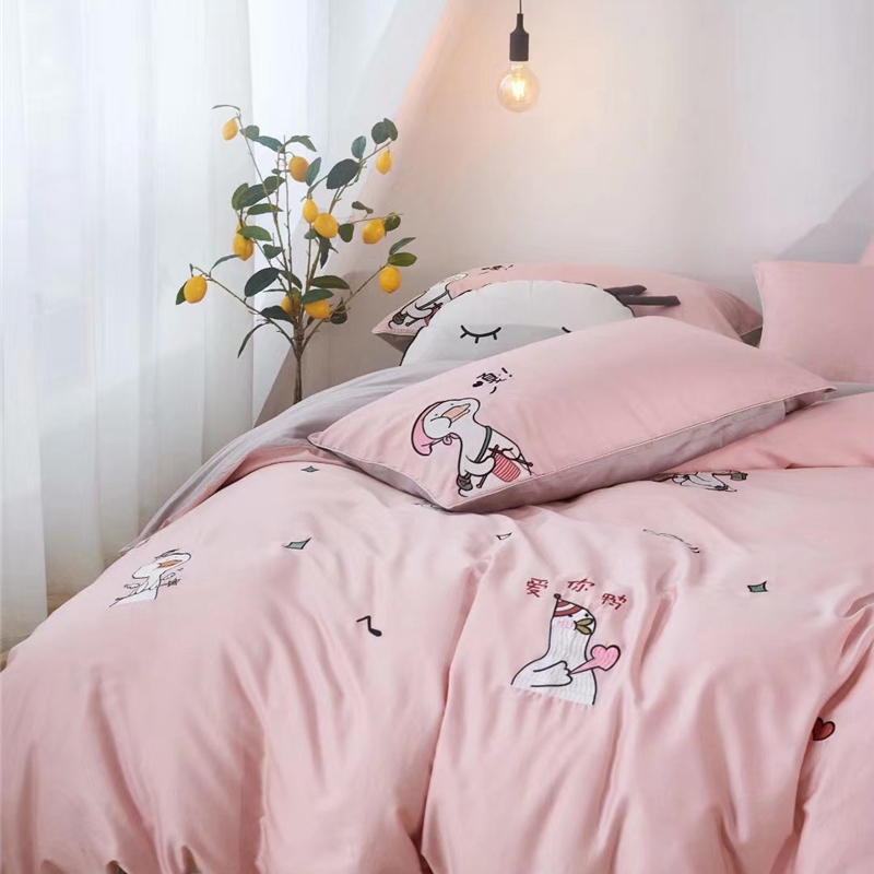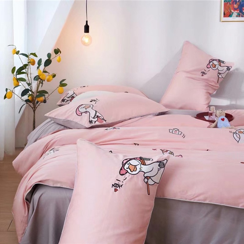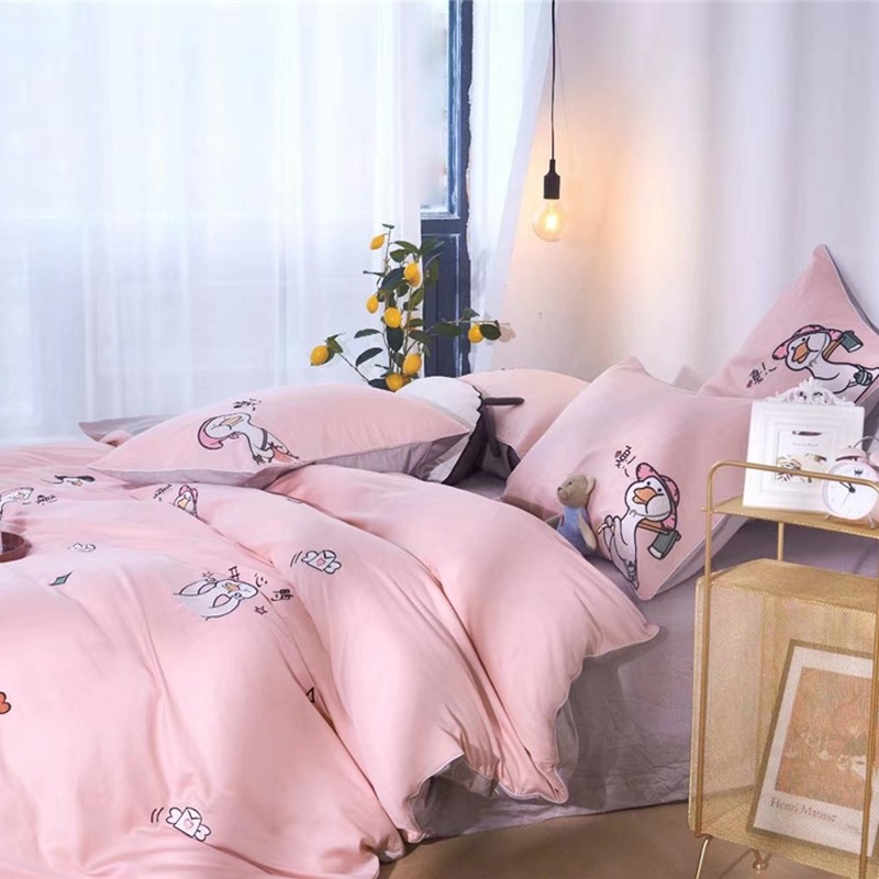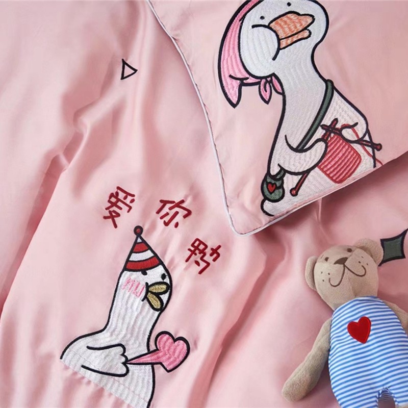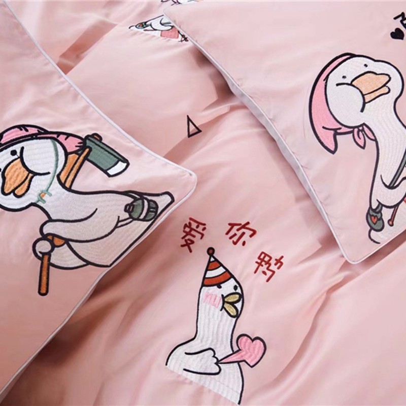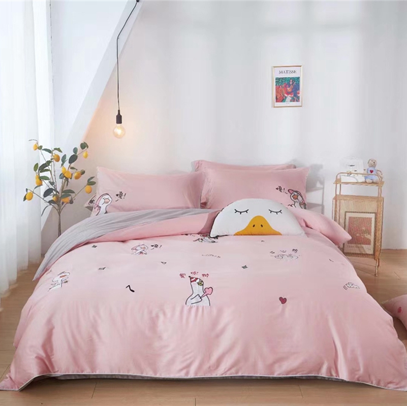 星尚家纺 2020新款60长绒棉四件套可爱卡通系列 爱你鸭 粉