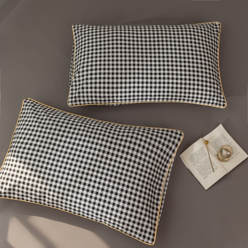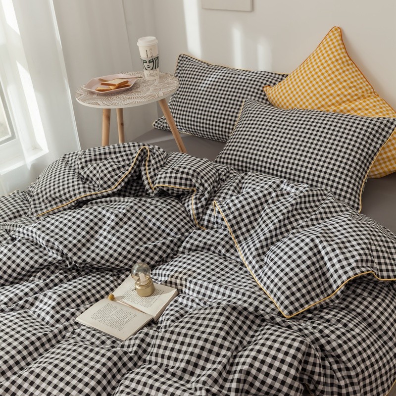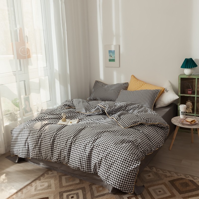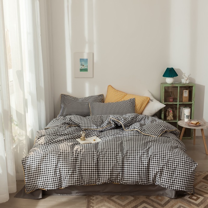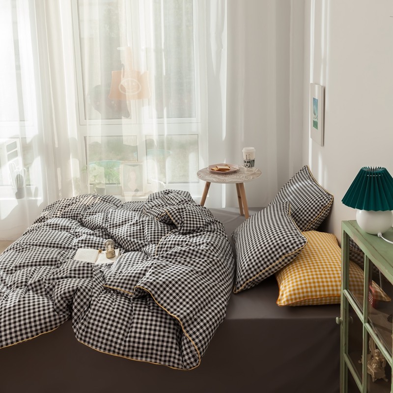 星期八 2020新款全棉13372格子嵌条系列四件套 黑格