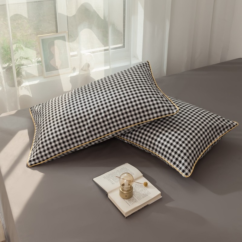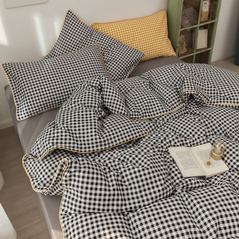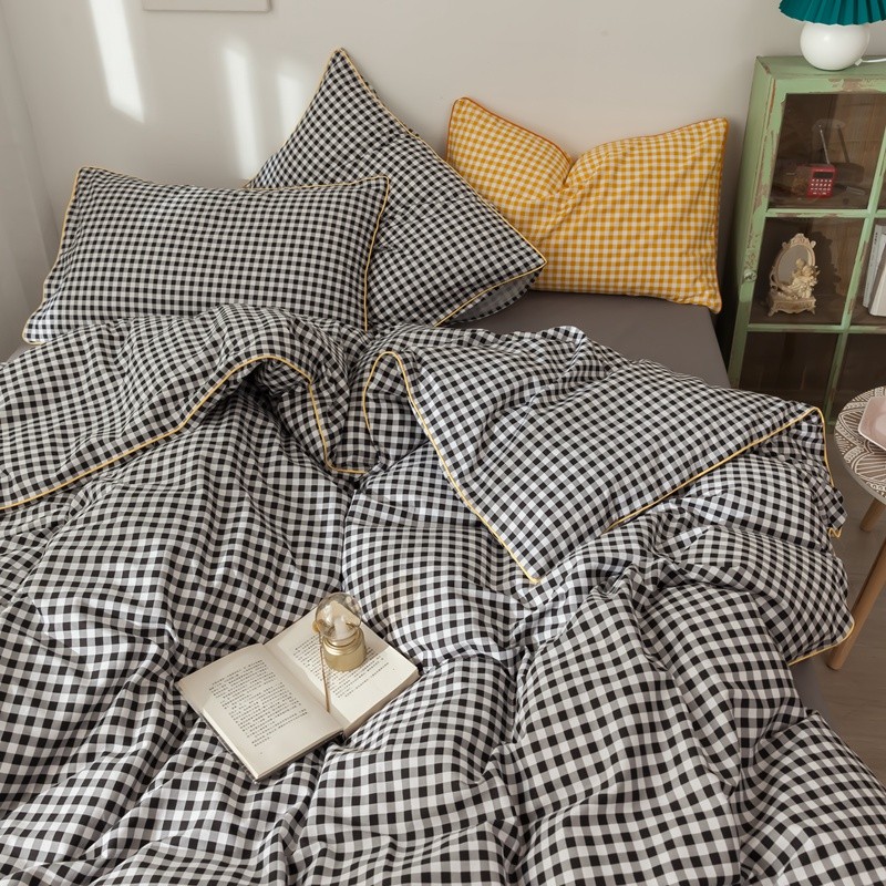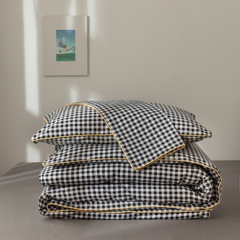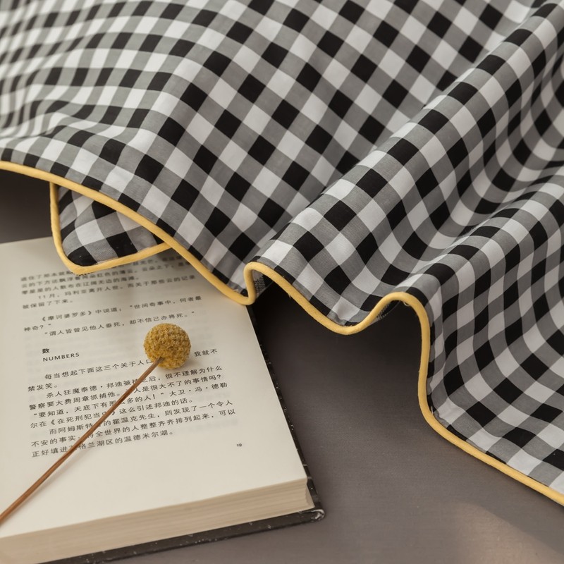 商品名称:星期八 2020新款全棉13372格子嵌条系列四件套 黑格