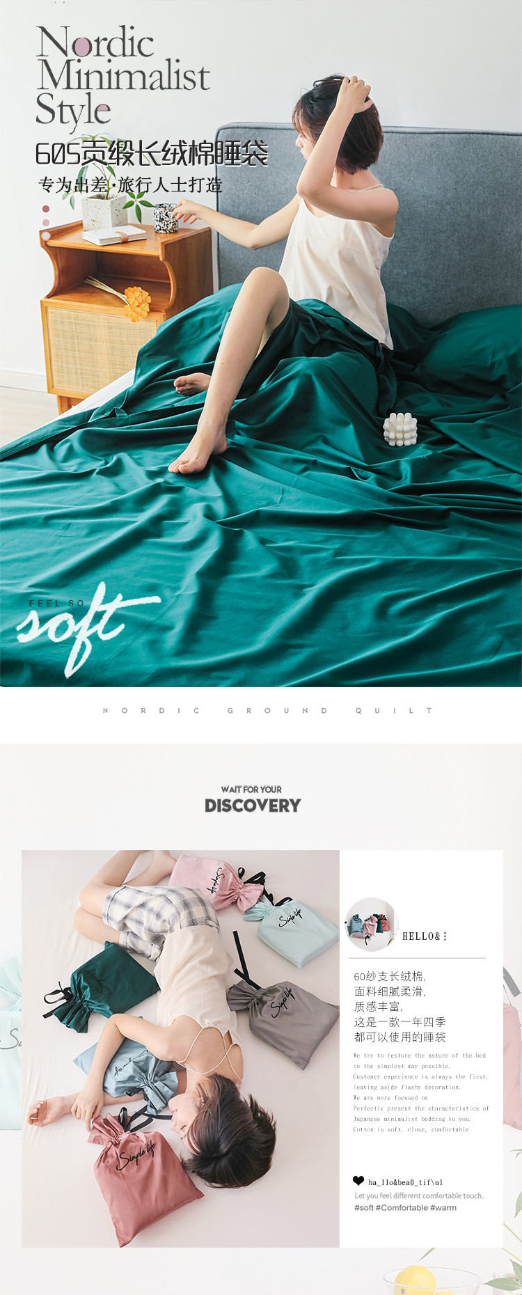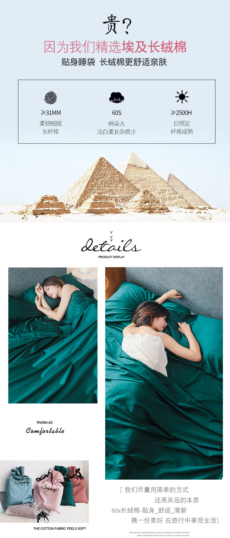 商品名称:西西家居 2023新款60长绒棉纯棉酒店旅游隔脏睡袋深翠绿