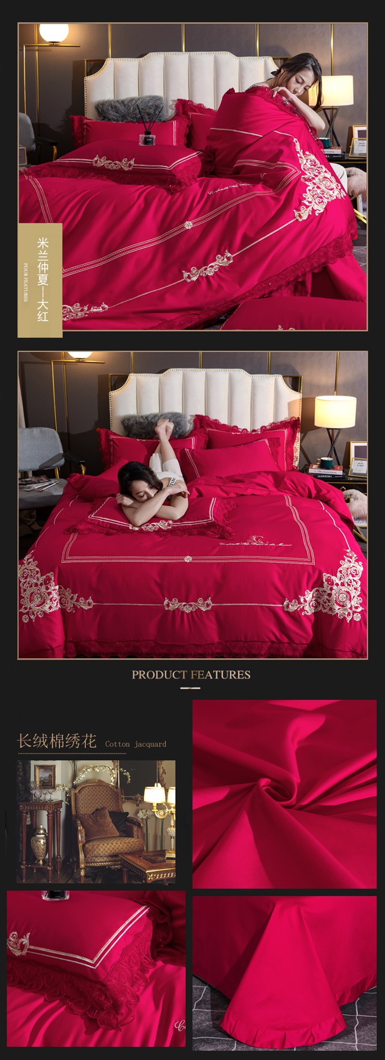 商品名称:唐人居 2025新款50支长绒棉四件套 米兰仲夏-大红