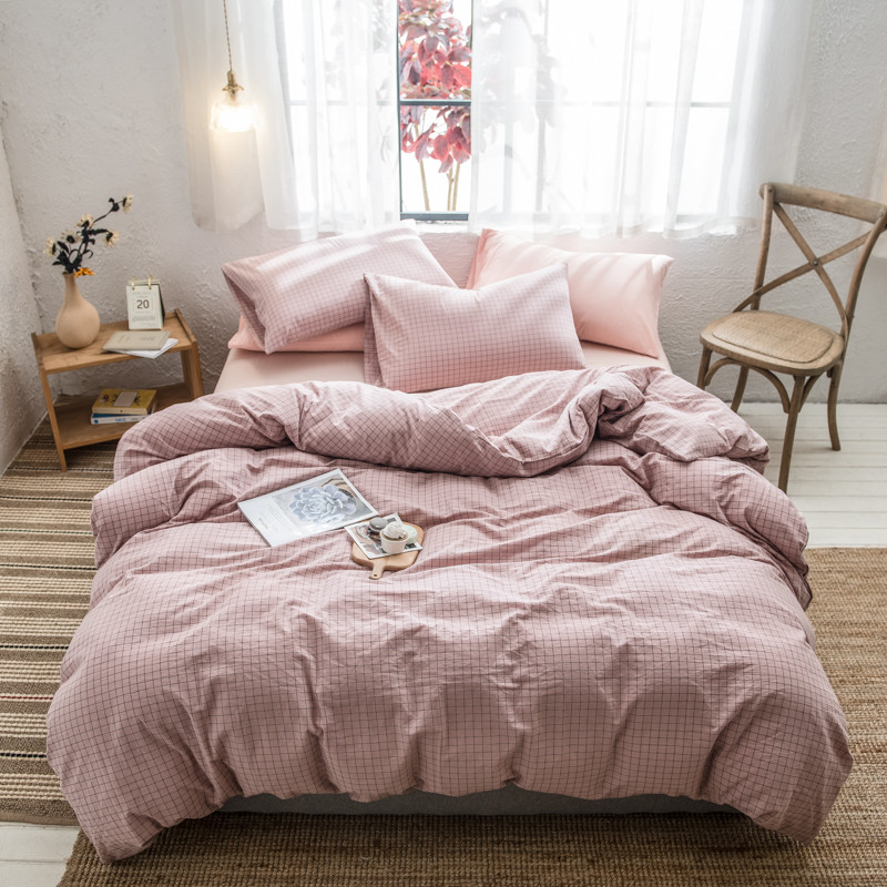 佳梦达 2020新款全色织全棉水洗双拼单被套 粉中格