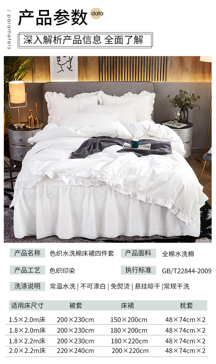 当前位置: 91家纺网 > 商品网购 > 床品套件 > 四件套 > 水洗棉四件套 > 十个点家纺 2020新款单层四件套 珠光白