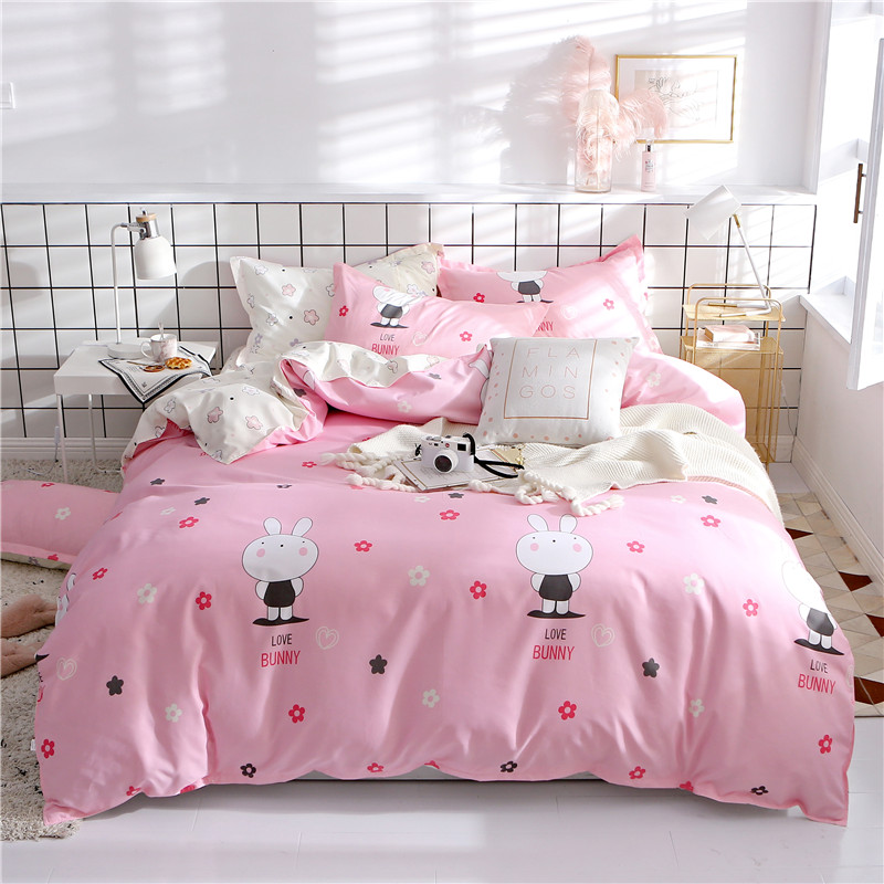 (总)漫仙阁家纺 2025新品云朵棉可爱风卡通烫画单床笠枕套三件套,小浣熊,邻家女孩,小青蛙,兔小姐,花仙子,狗狗家族