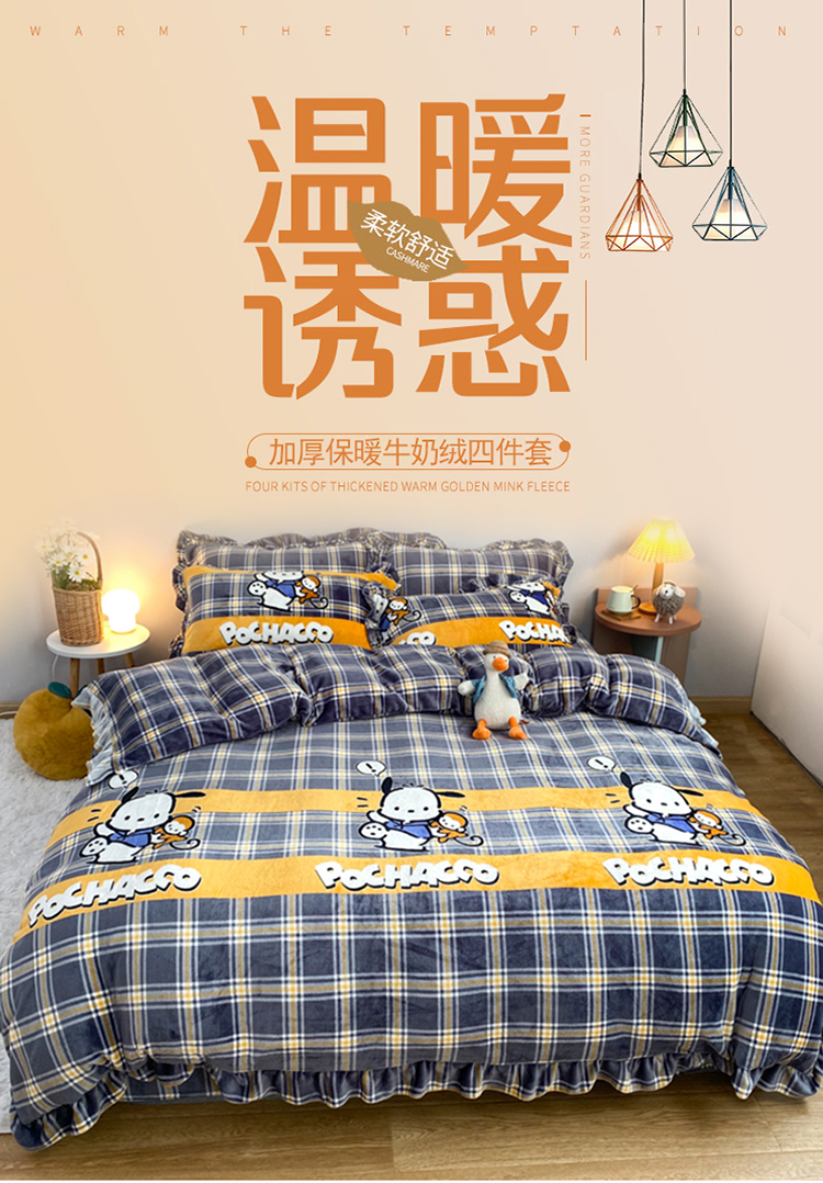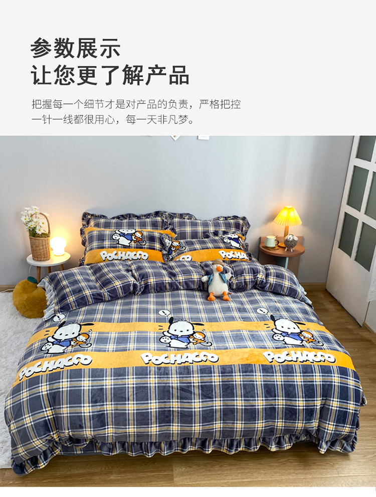 商品名称:妖妖家纺 2020新款花边牛奶绒四件套 巴卜豆豆
