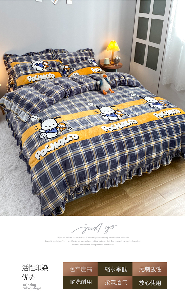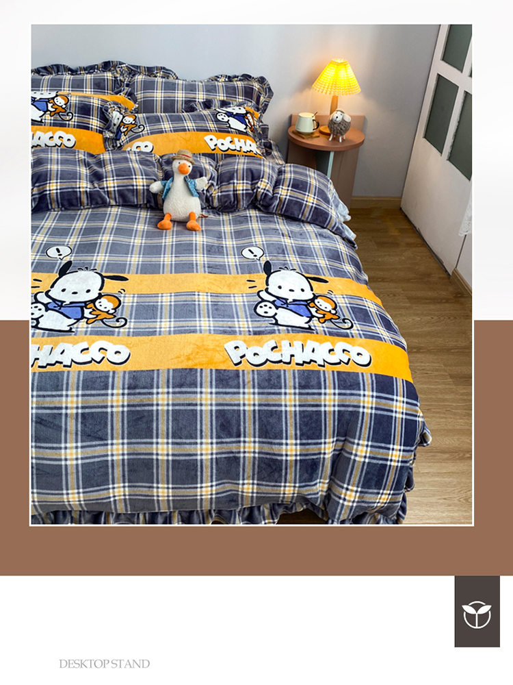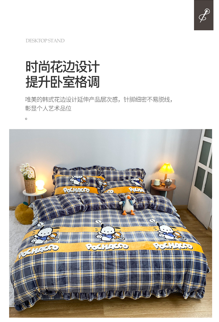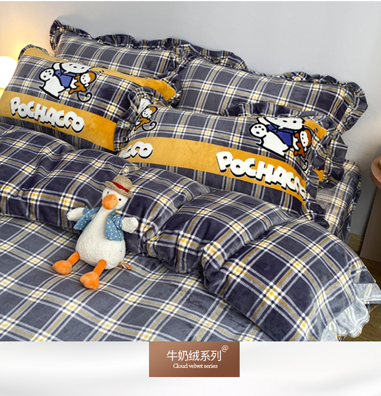 妖妖家纺 2020新款花边牛奶绒四件套 巴卜豆豆
