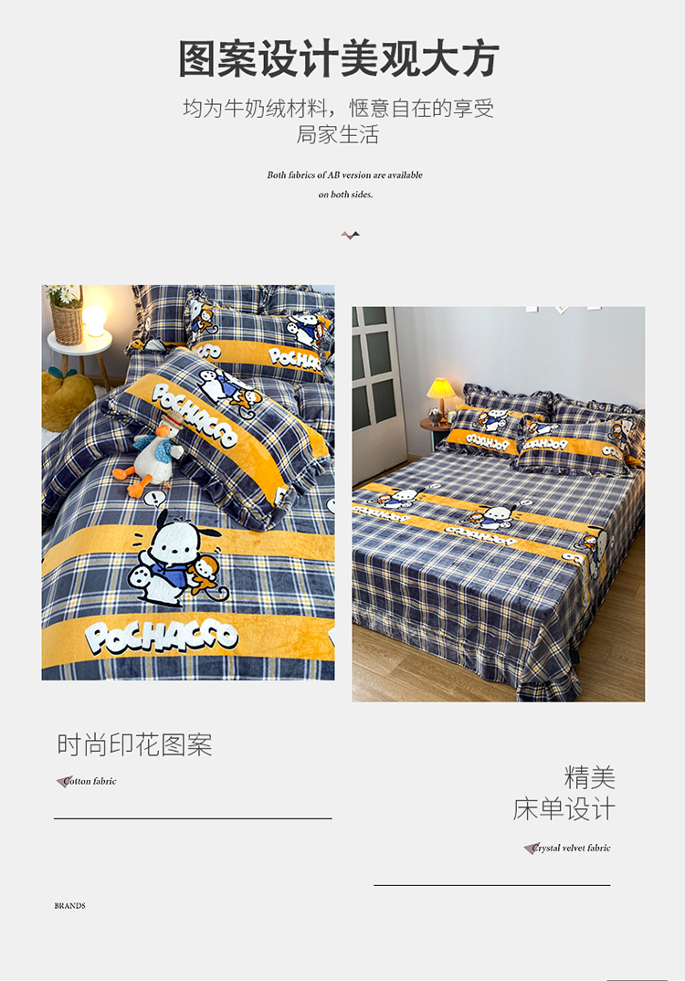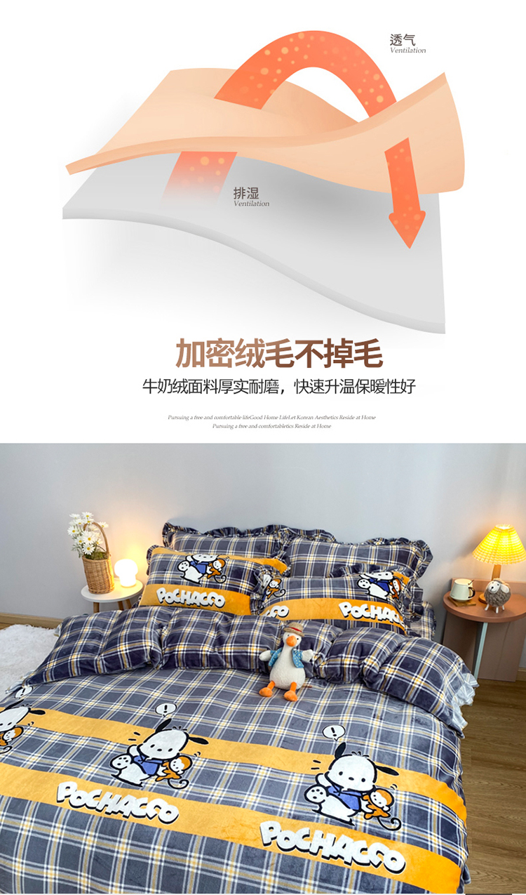 (总)妖妖家纺 2025新款高克重牛奶绒三丽鸥大版四件套,wink玉桂狗,豹纹kitty,呆萌帕恰狗,呆萌kitty,飞行美乐蒂,开心布丁狗,库洛米大厨,甜酷库洛米,兔兔与美乐蒂,玉桂狗郊游