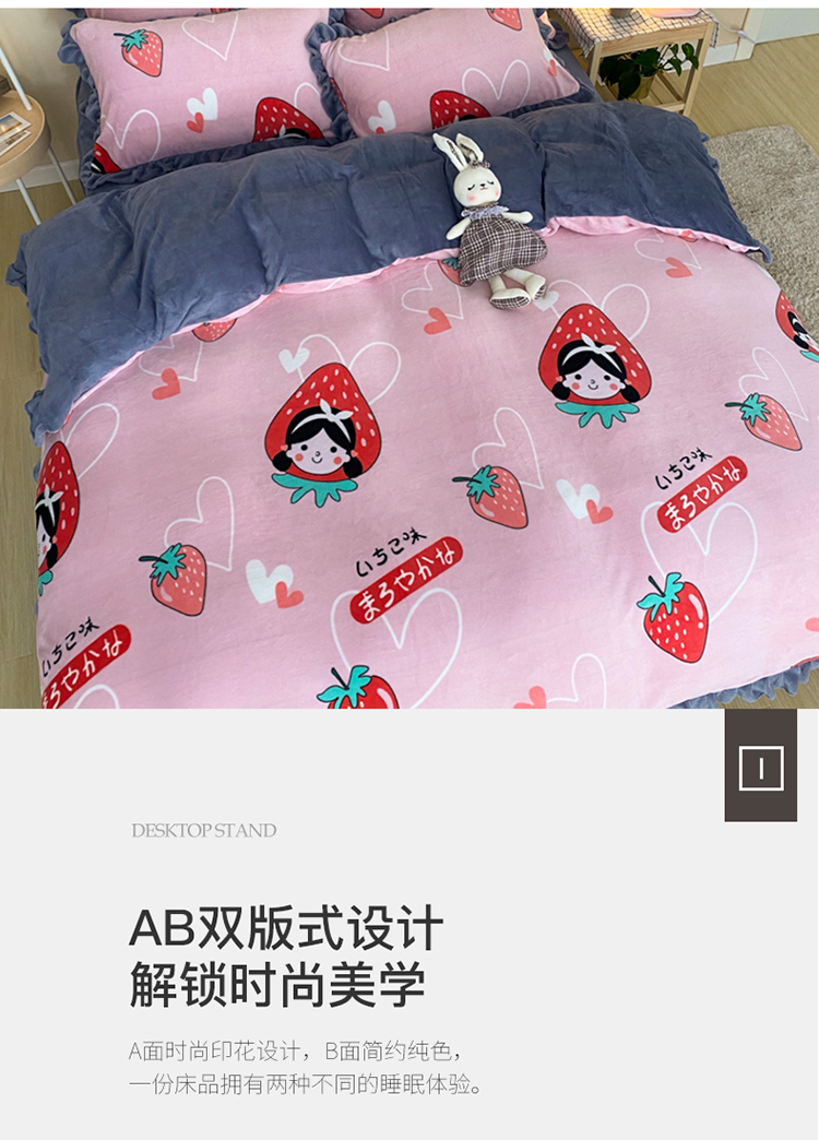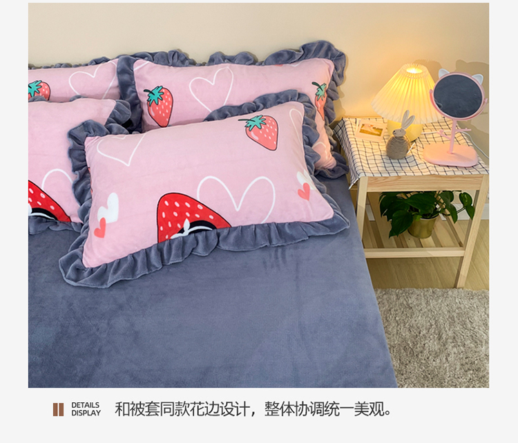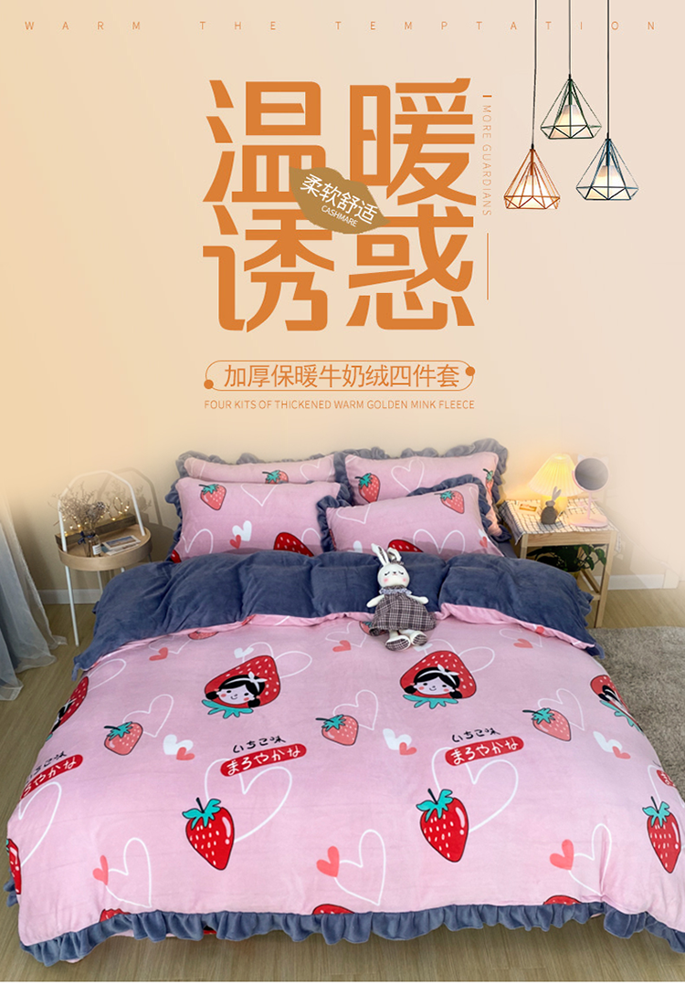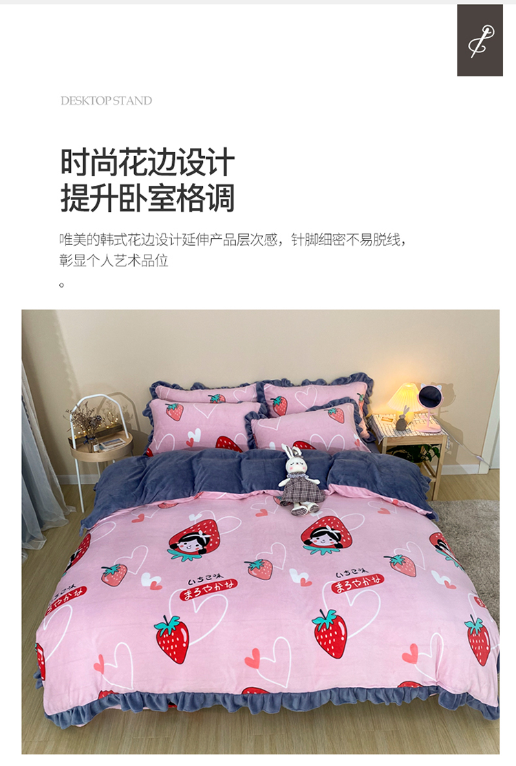 妖妖家纺 2020新款花边牛奶绒四件套 女孩妙妙