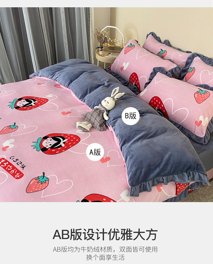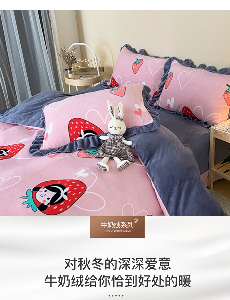 (总)妖妖家纺 2023新款牛奶绒四件套,草莓小熊,开心米奇,千鸟蝴蝶结,小兔花,幸运熊,阳光恐龙,郁金花开,草莓兔,呆萌熊,戴佳,花朵兔,花漫,浪漫蝴蝶结,罗意花礼,梦幻花季,南瓜熊,奇谷花,兔子与小仙女-白,兔子与小仙女-绿,香榭乐园,小熊婚礼,心动草莓熊,寻花梦,忆花情,紫车厘