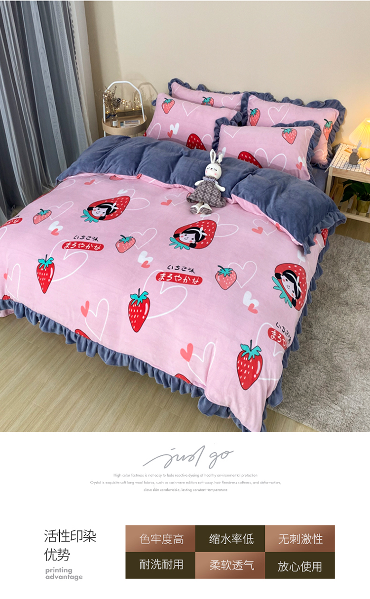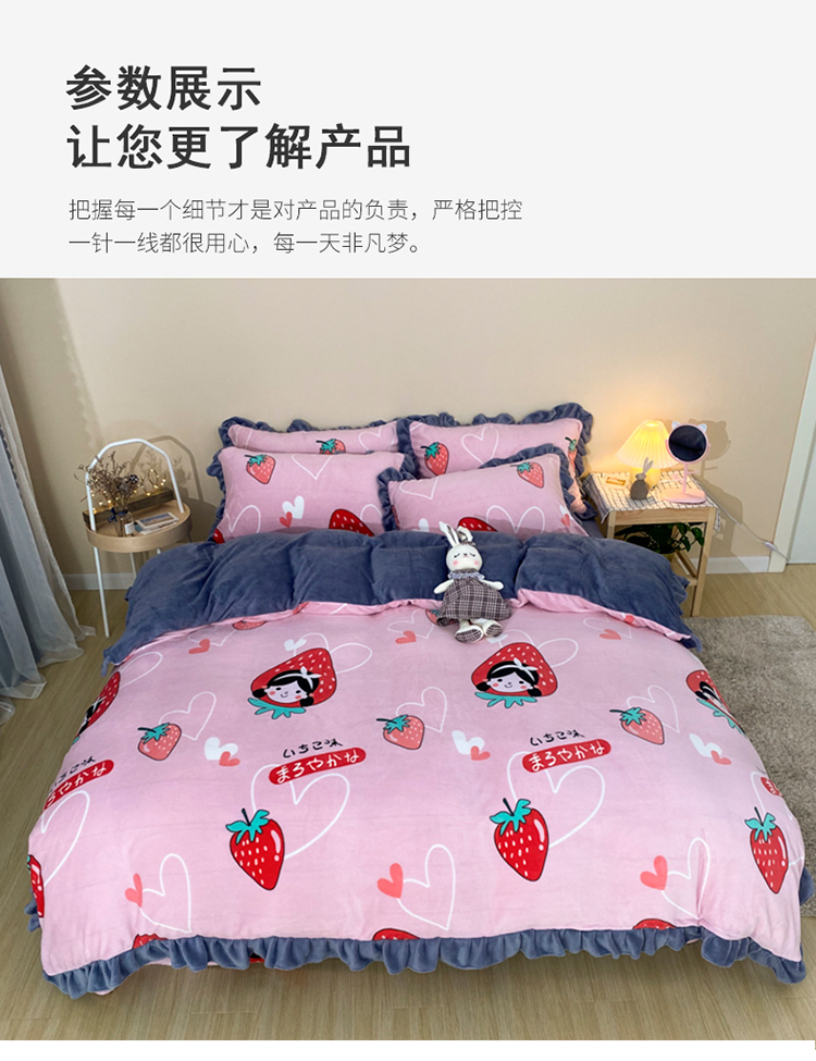 商品名称:妖妖家纺 2020新款花边牛奶绒四件套 女孩妙妙
