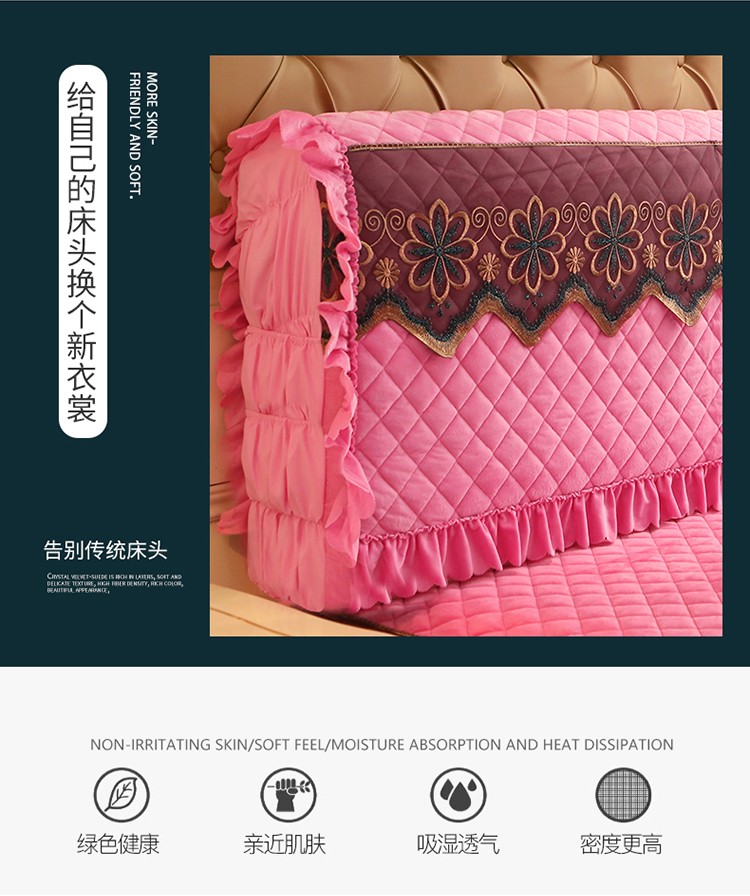 商品名称:情恒 2025新款水晶绒皇家豪庭全包床头罩大靠背靠垫 粉红色