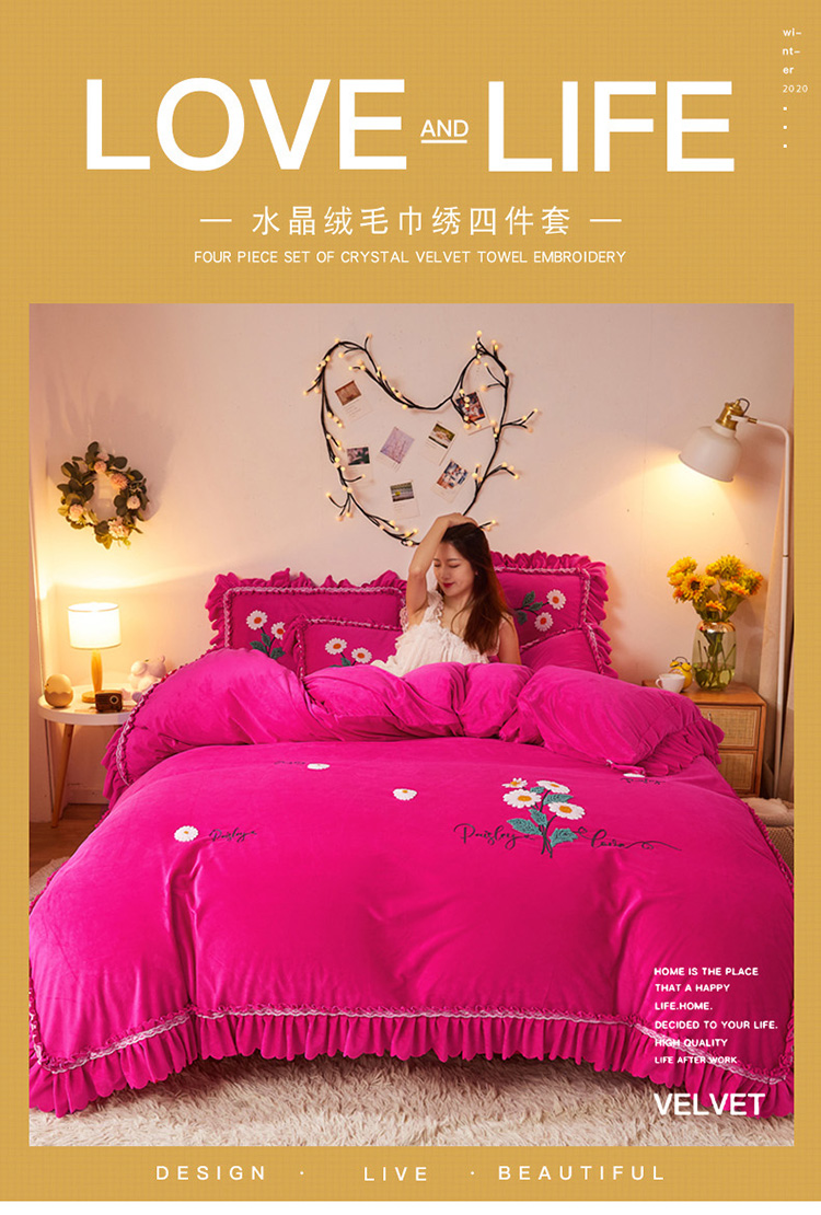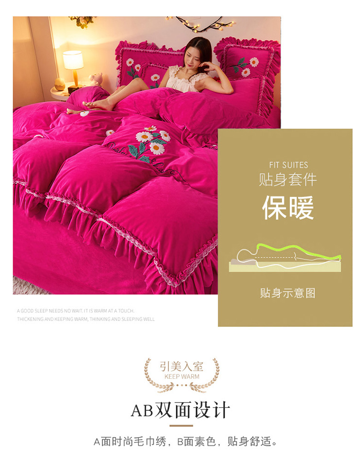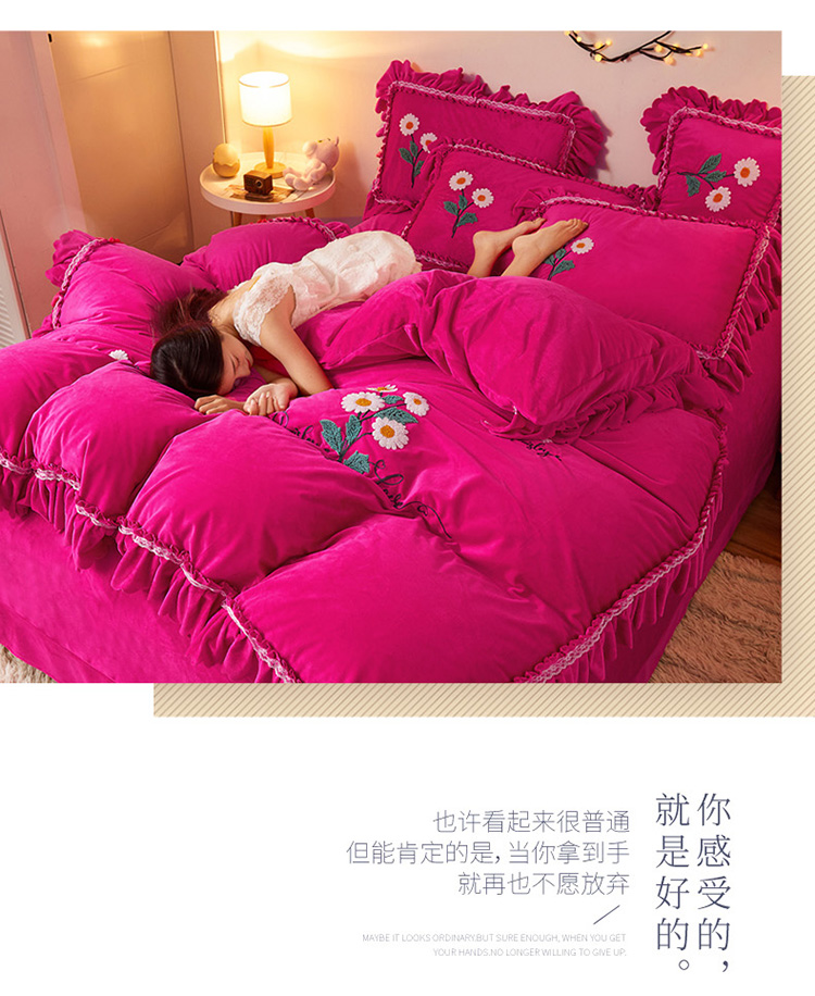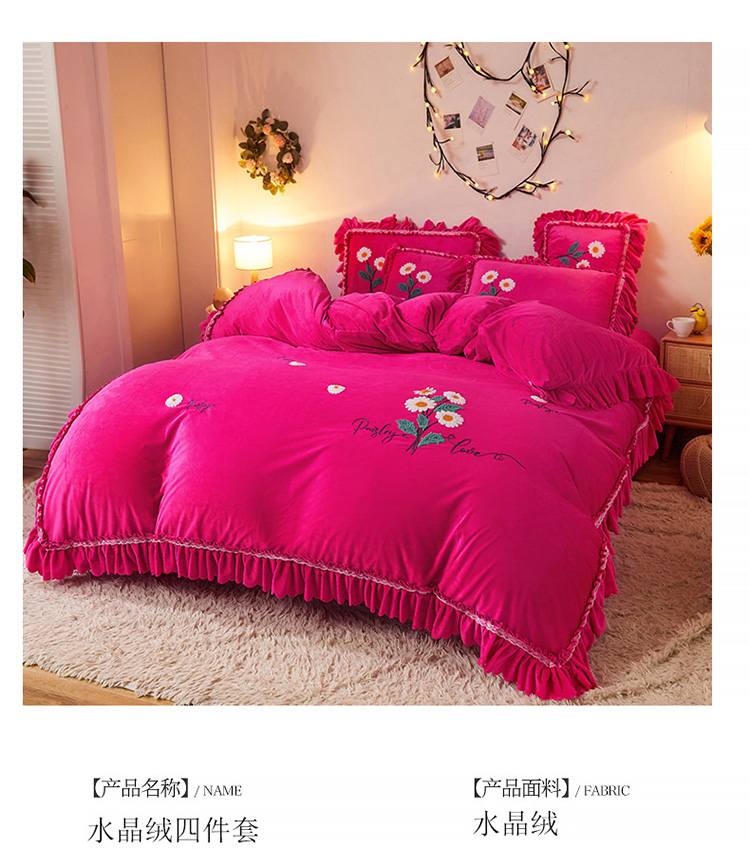 商品名称:铠畅2021新款水晶绒床裙款四件套梦幻系列 梦幻玫红