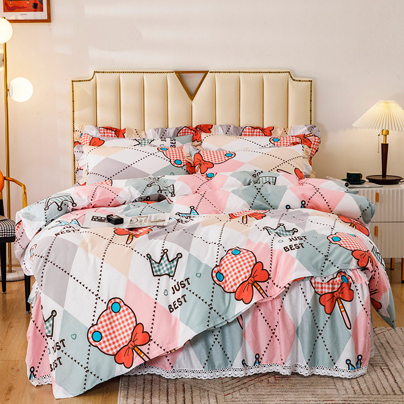 商品名称:纽缦 2021新款上下边床裙四件套 糖果熊