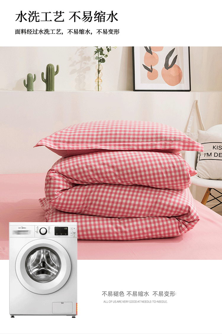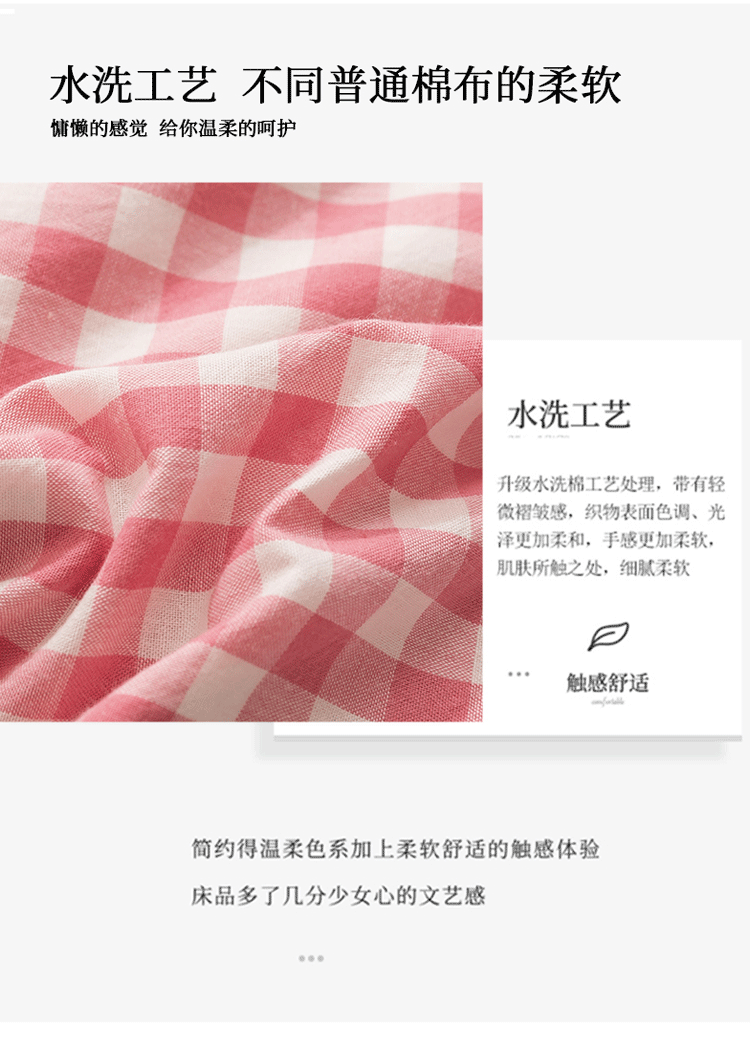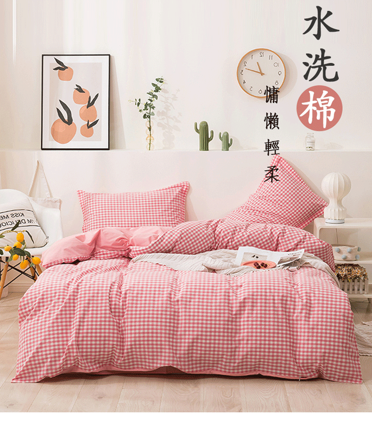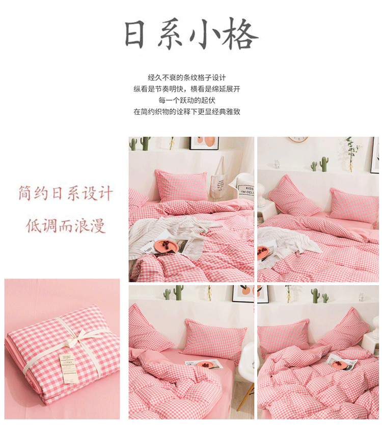 商品名称:简色坊 2023新款全棉水洗棉单品被套 粉小格