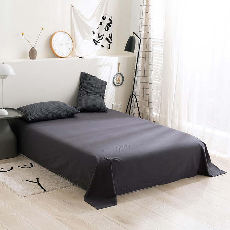 简色坊 2023新款全棉水洗棉单品床单 条格-灰