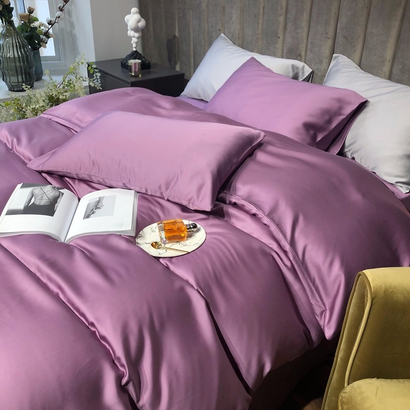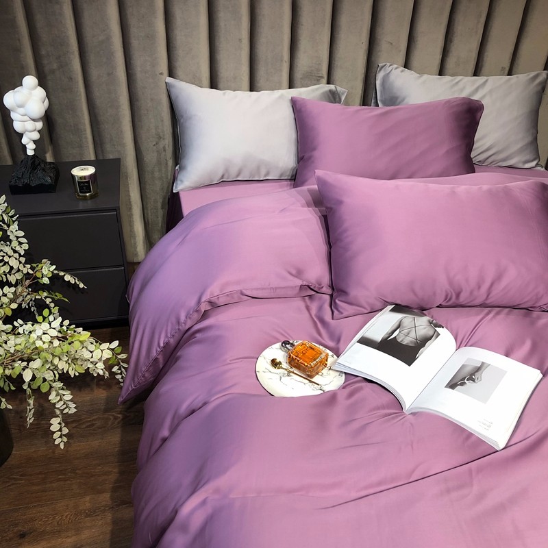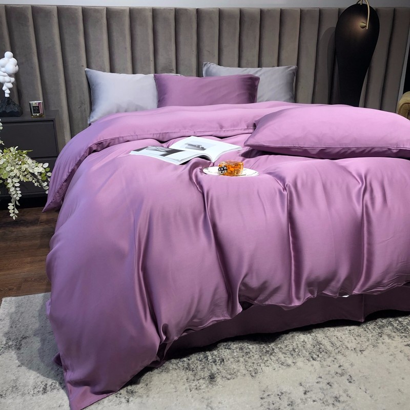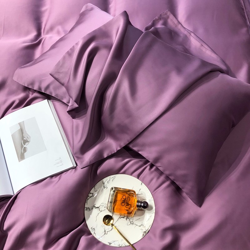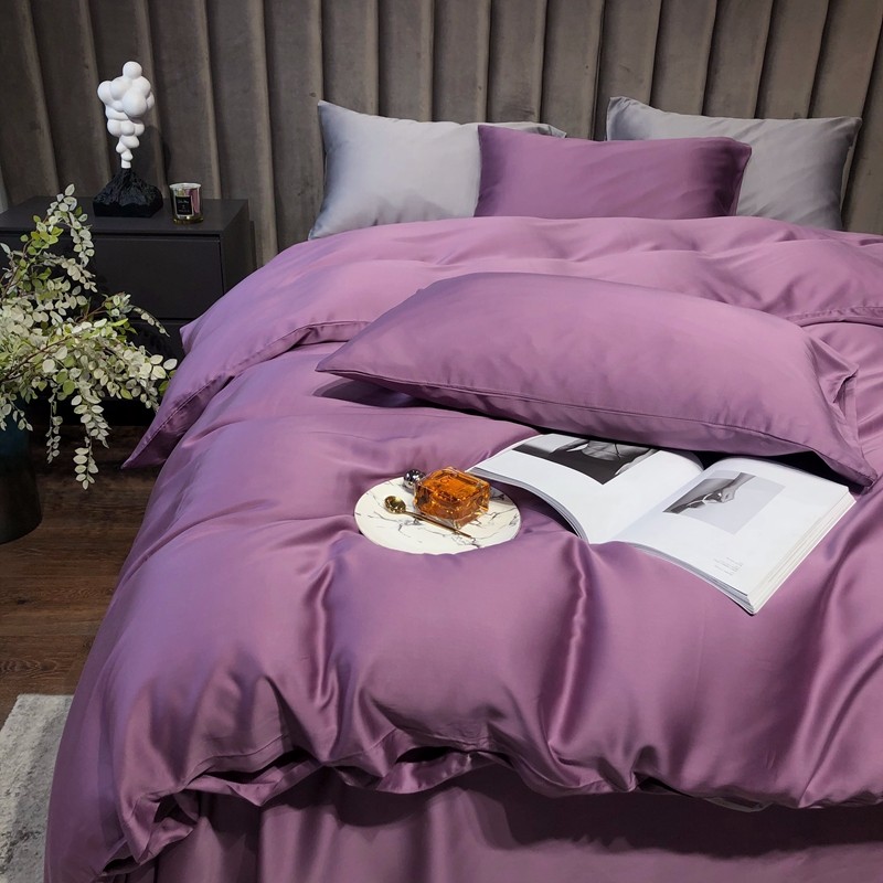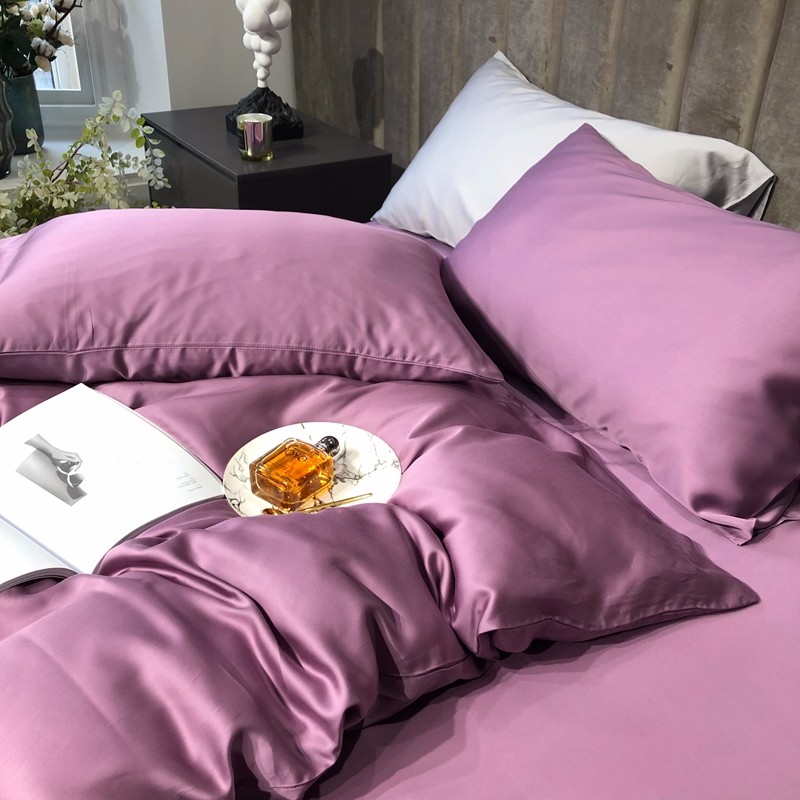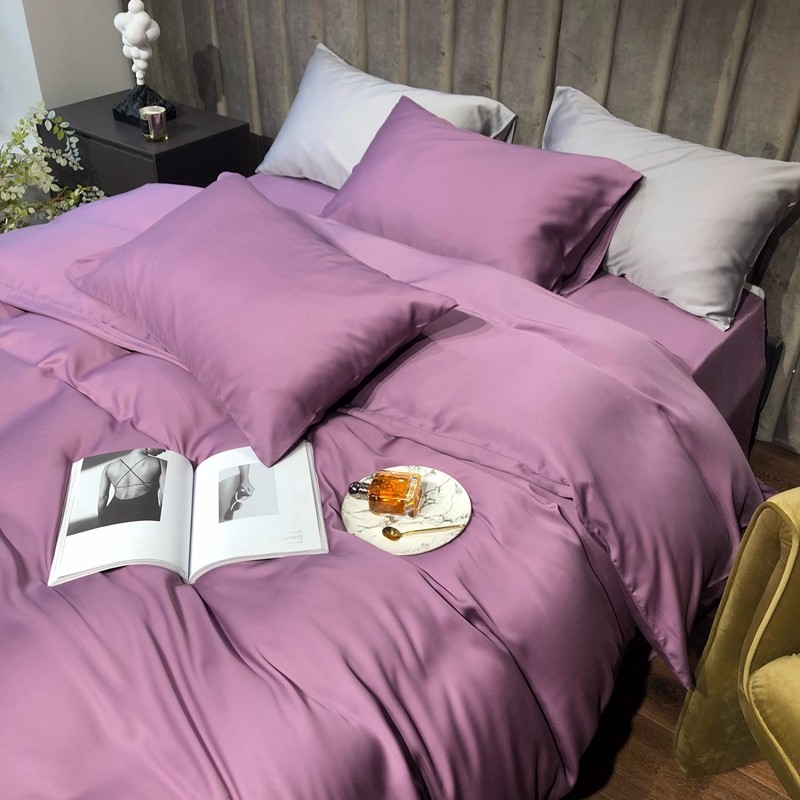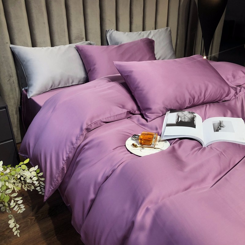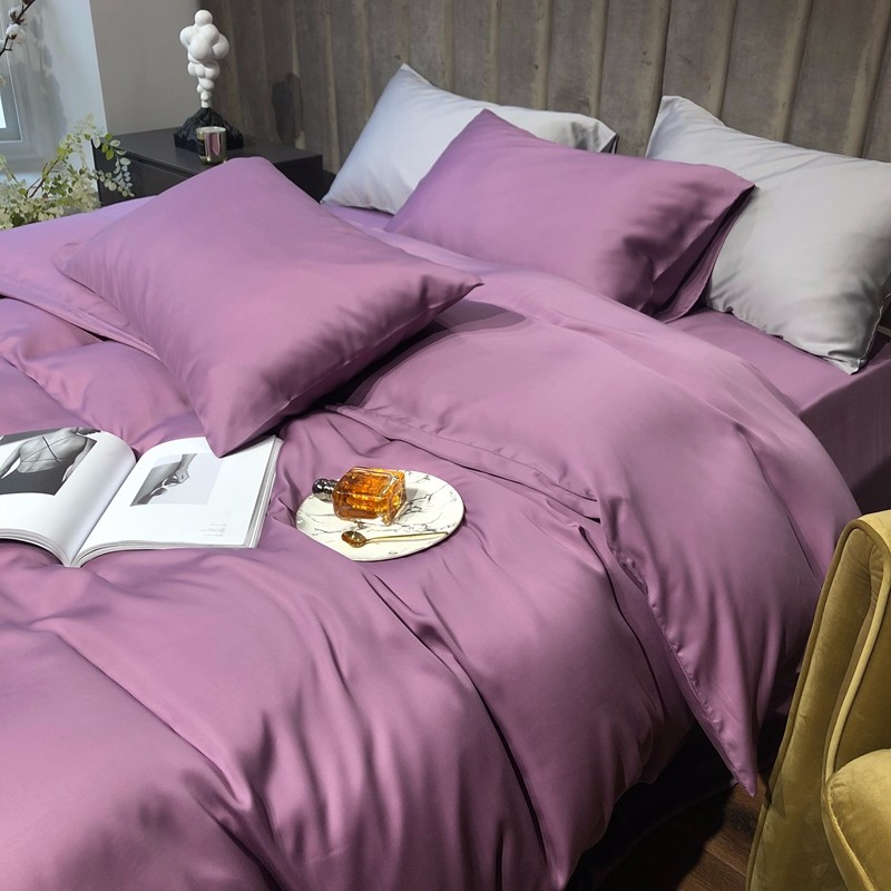 涞澳家居 2021新款60天丝纯色四件套薇紫豆沙