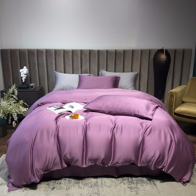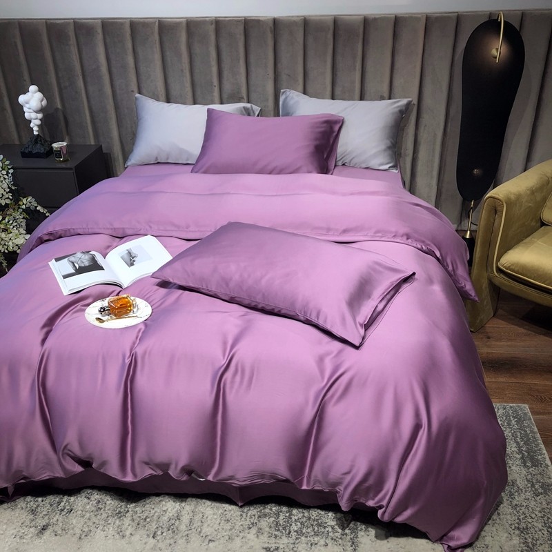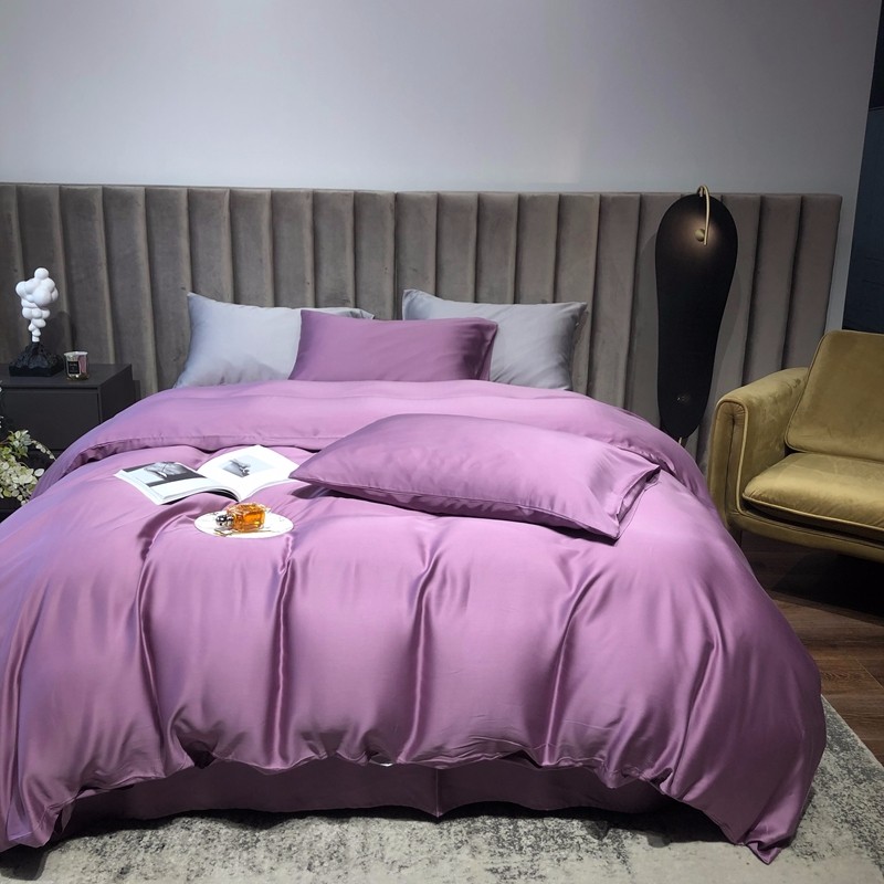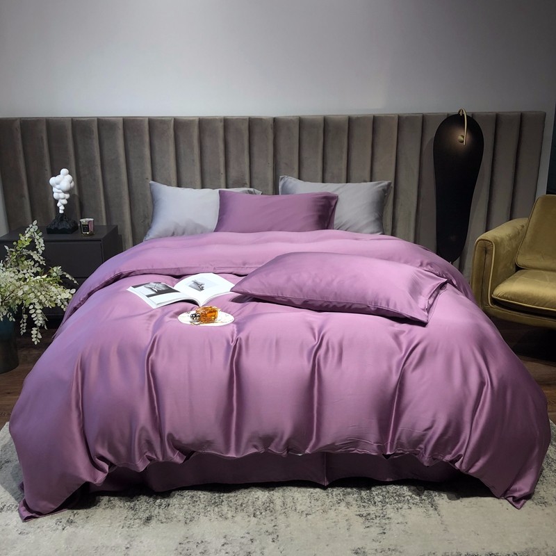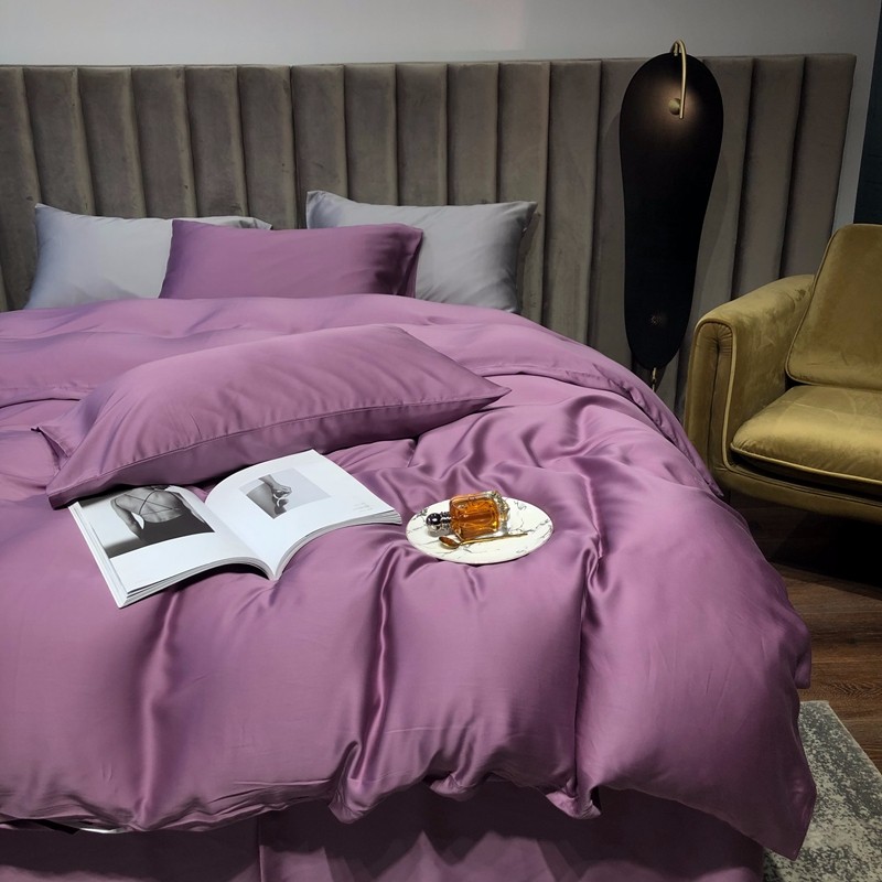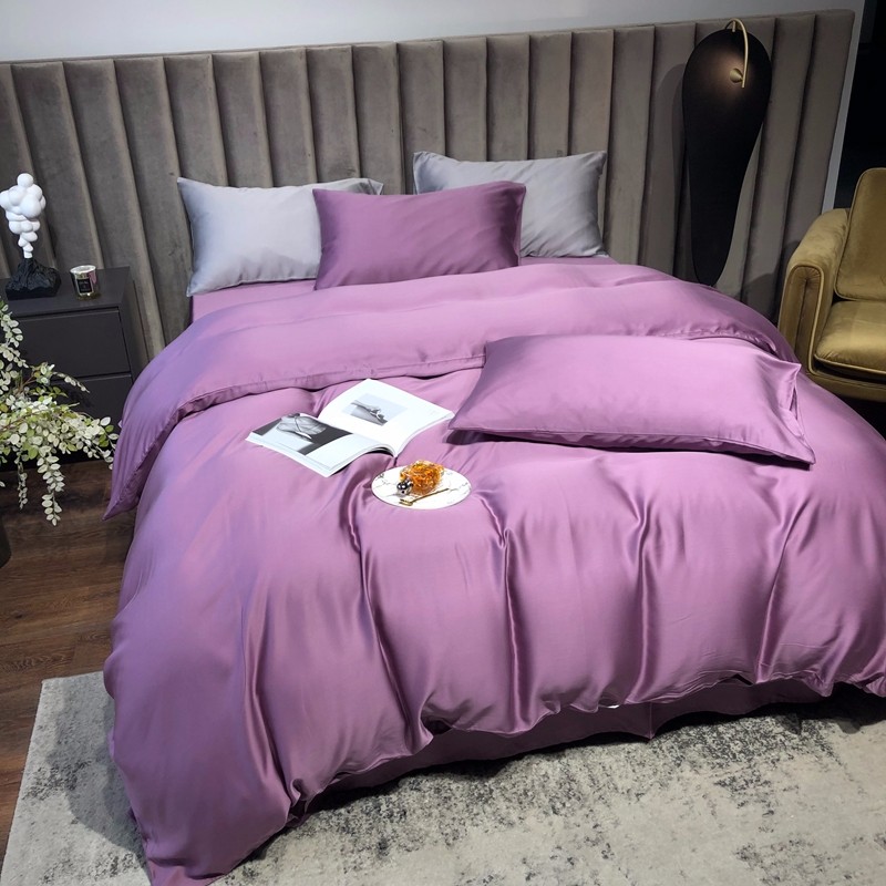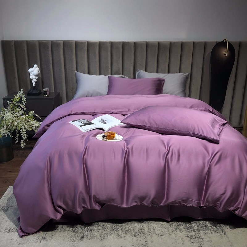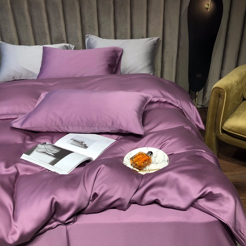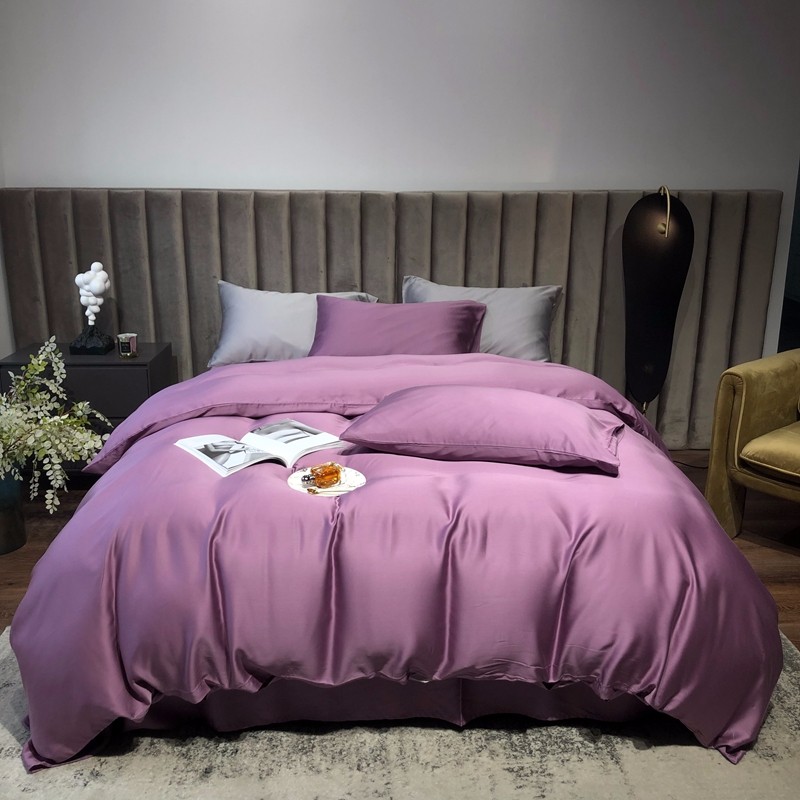 涞澳家居 2021新款60天丝纯色四件套薇紫豆沙