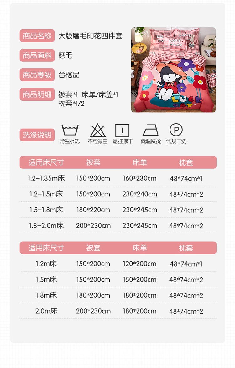 大号(适合1.8m床)被套200/230,床笠180/200,枕套48/74*2 | ¥68.00 |