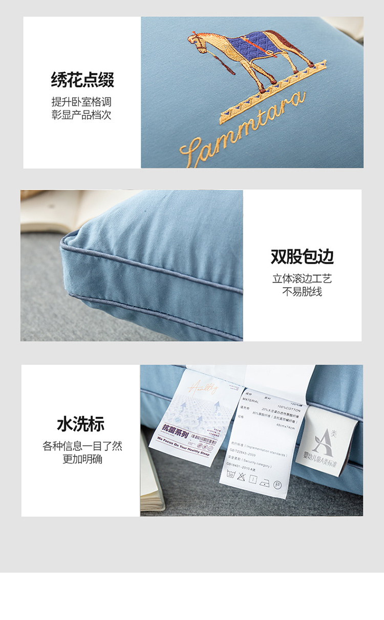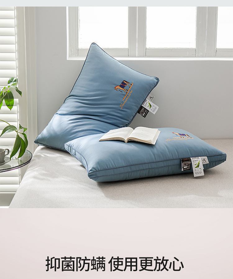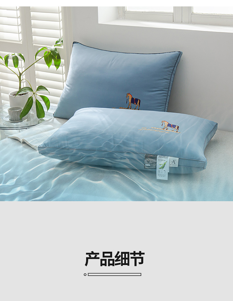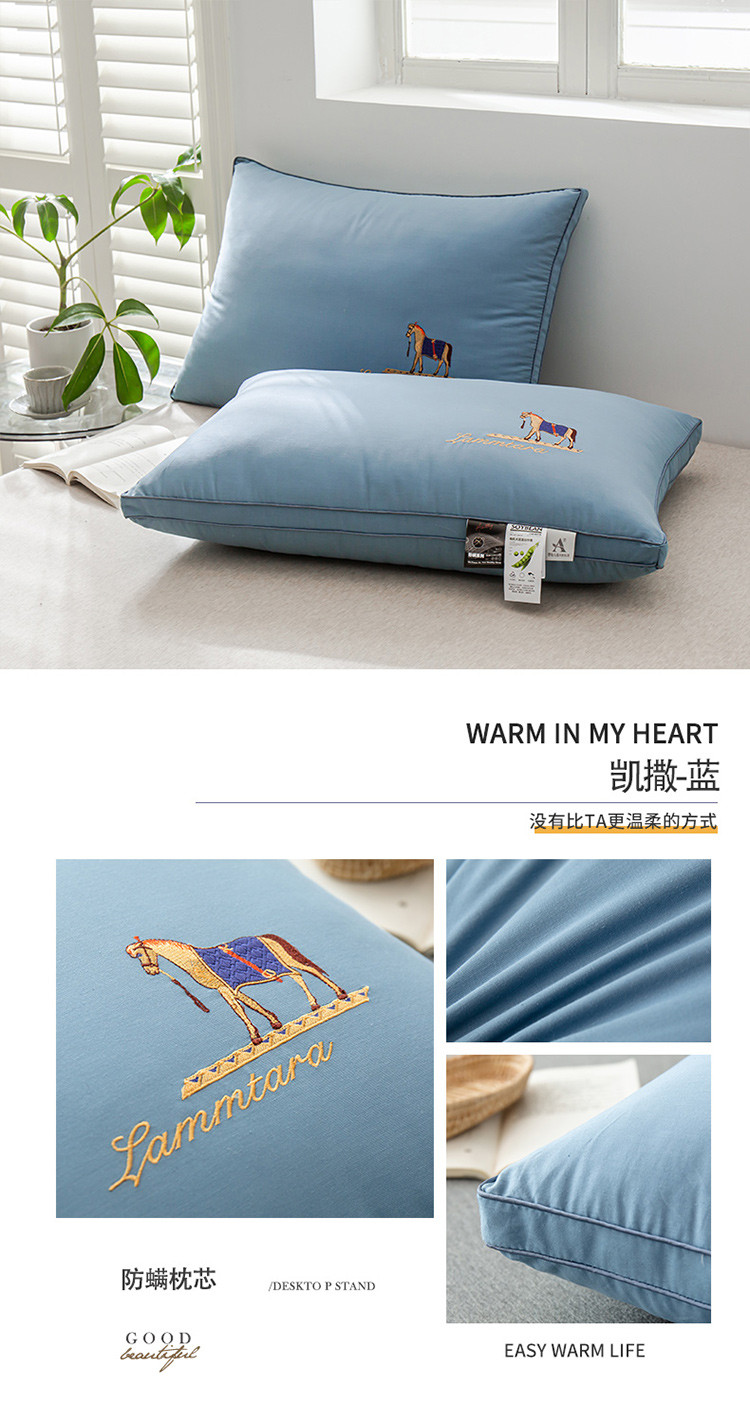 商品名称:头等舱 2022新款全棉A类大豆抗菌防螨枕芯 凯撒-蓝