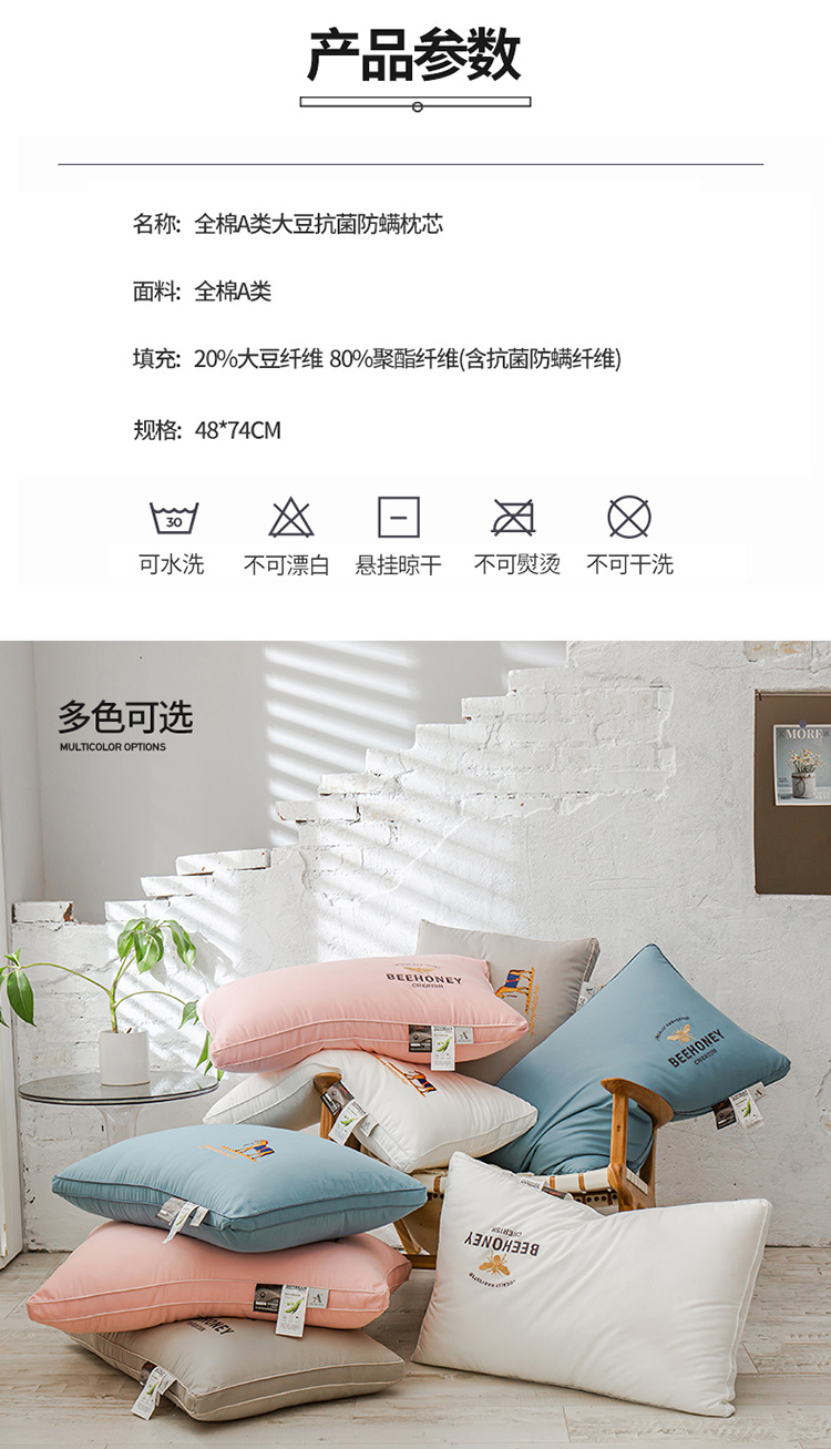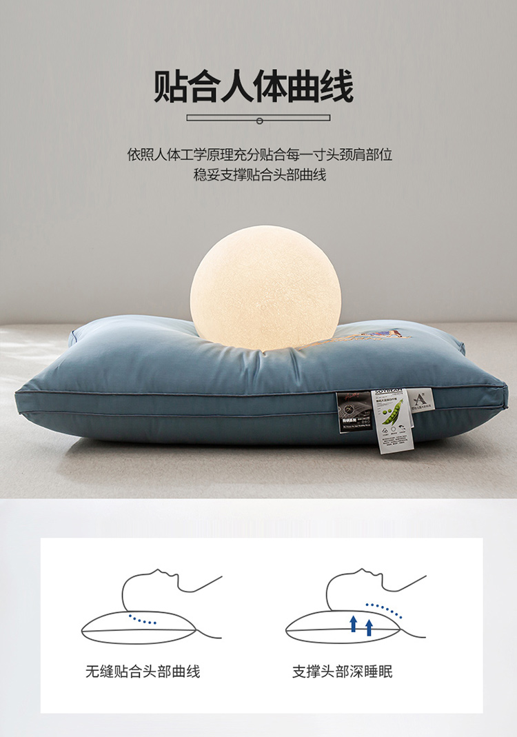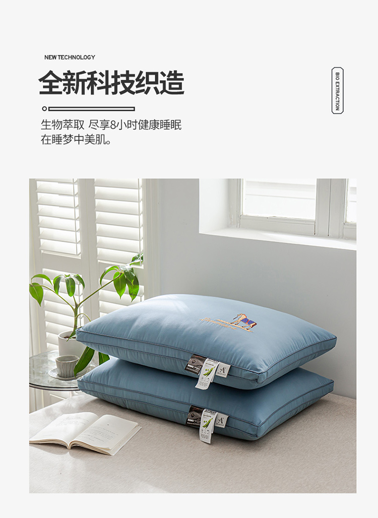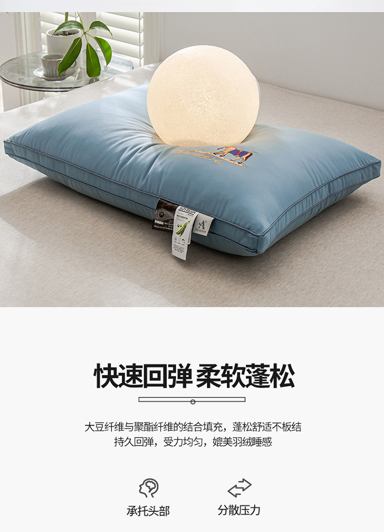 商品名称:头等舱 2022新款全棉A类大豆抗菌防螨枕芯 凯撒-蓝