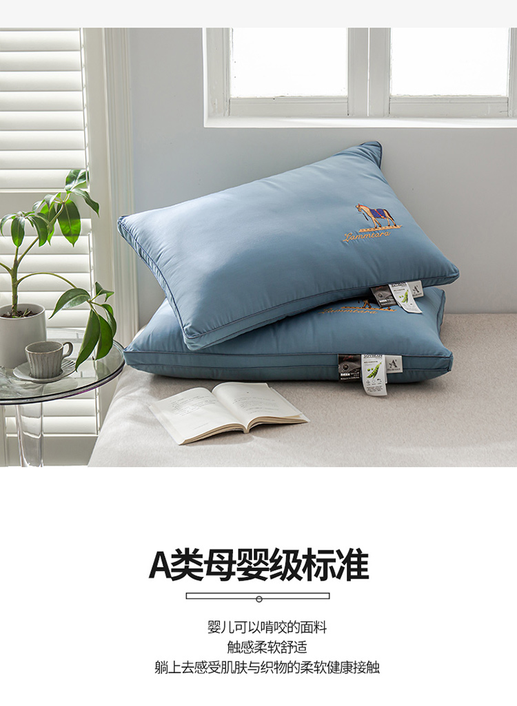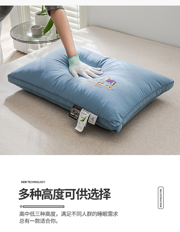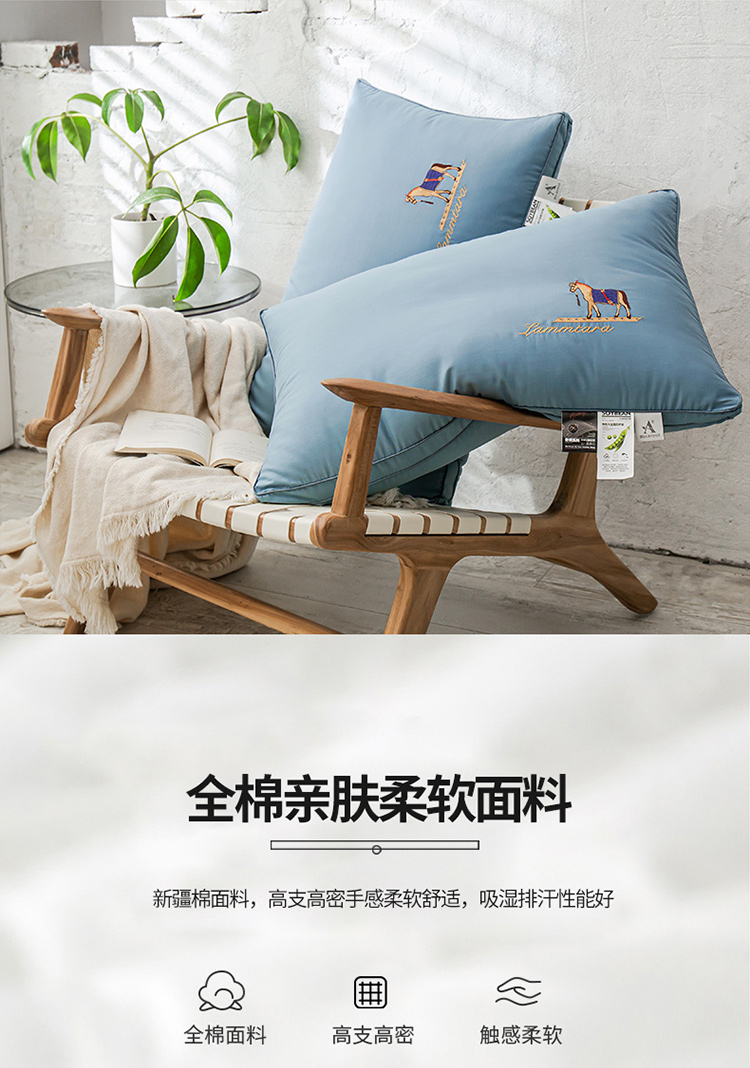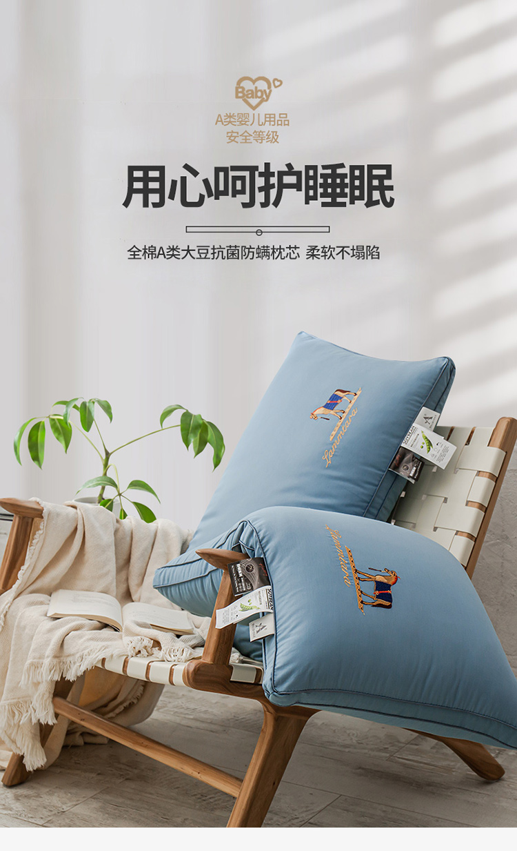 头等舱 2022新款全棉A类大豆抗菌防螨枕芯 凯撒-蓝