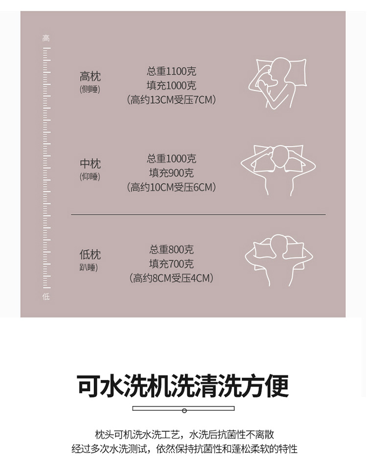 (总)头等舱 2025新款全棉A类三防酒店抗菌枕头枕芯,低枕,中枕,高枕