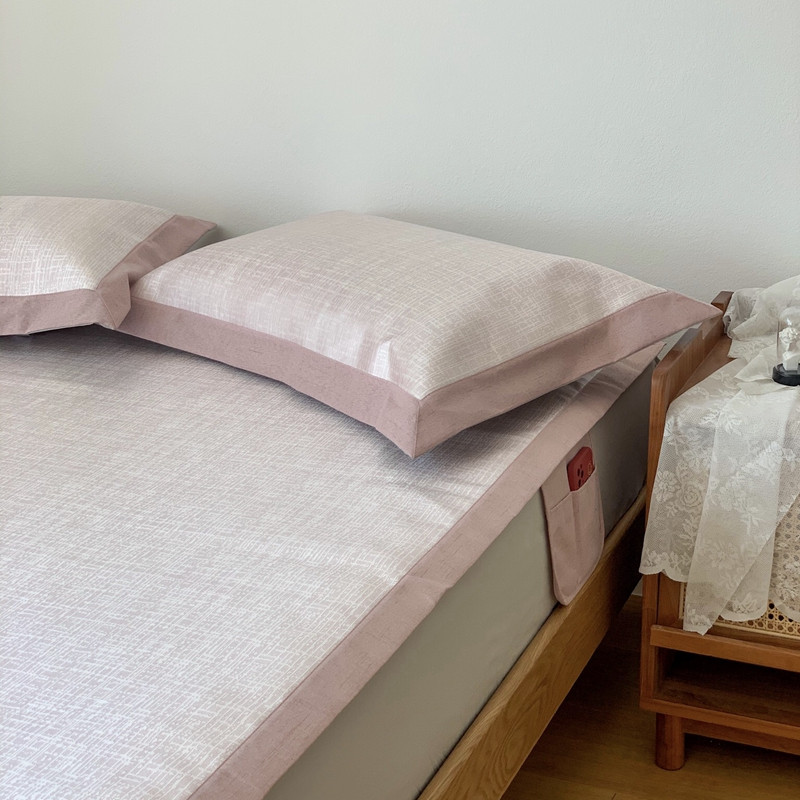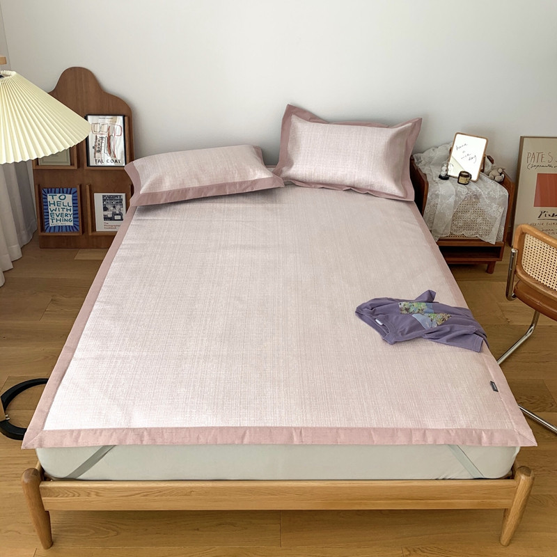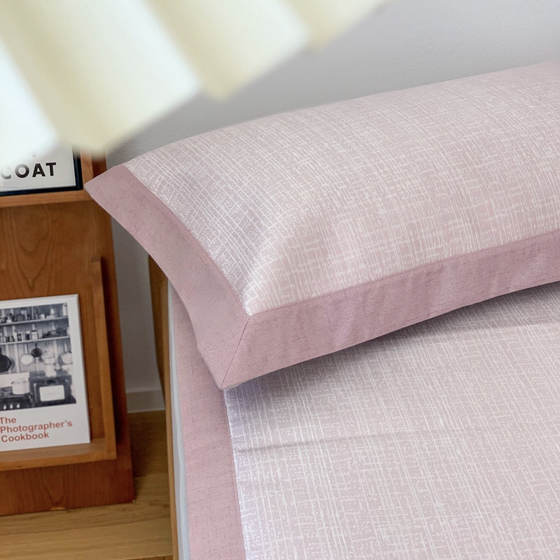 时年 2021新款水洗提花冰丝凉席养生席 席纹-粉
