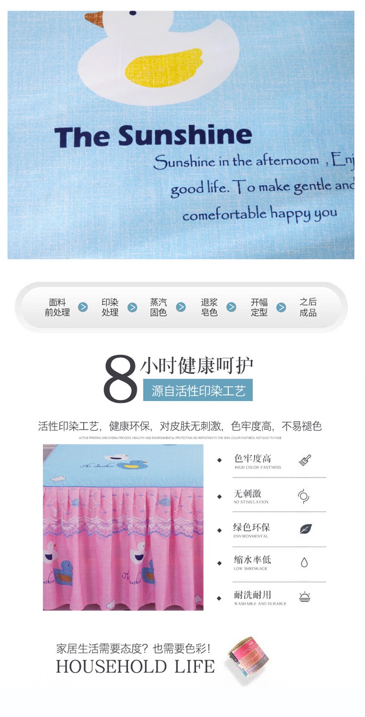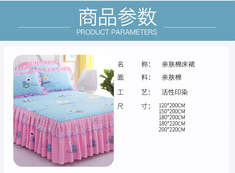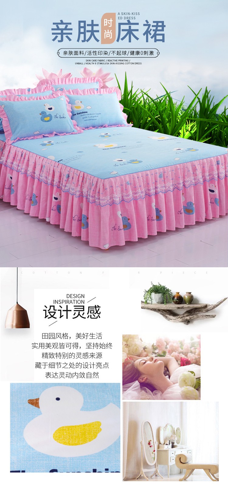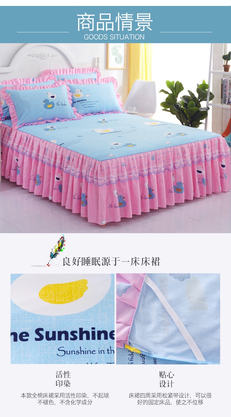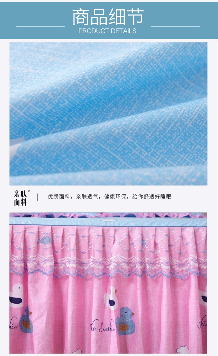 商品名称:艾裙海床笠 2025新款韩版蕾丝单床裙悠闲小鸭-蓝
