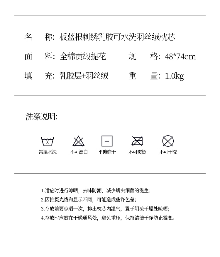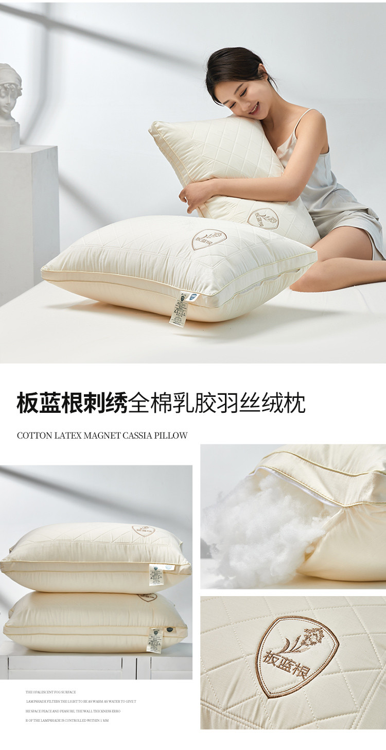当前位置: 91家纺网 > 商品网购 > 枕头/枕芯/保健枕/颈椎枕 > 普通枕芯 > (总)梦叶草贡缎板蓝根刺绣乳胶羽丝绒枕芯可水洗枕头