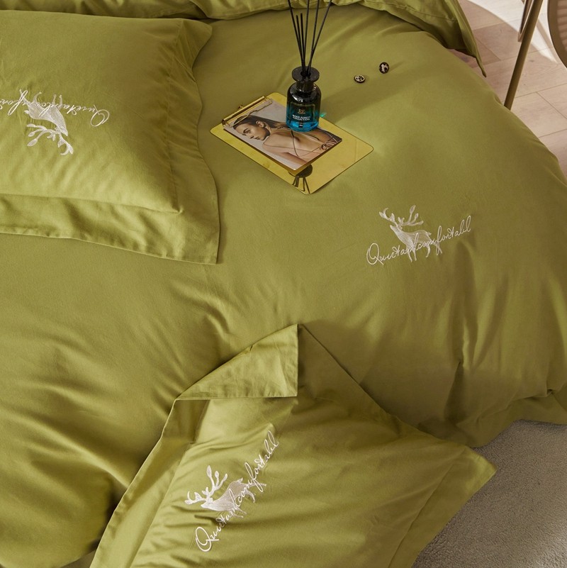 商品名称:威克凯丽2021新款秋冬绣花3221磨毛四件套奥兰多-豆绿