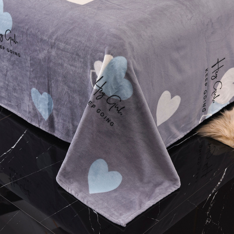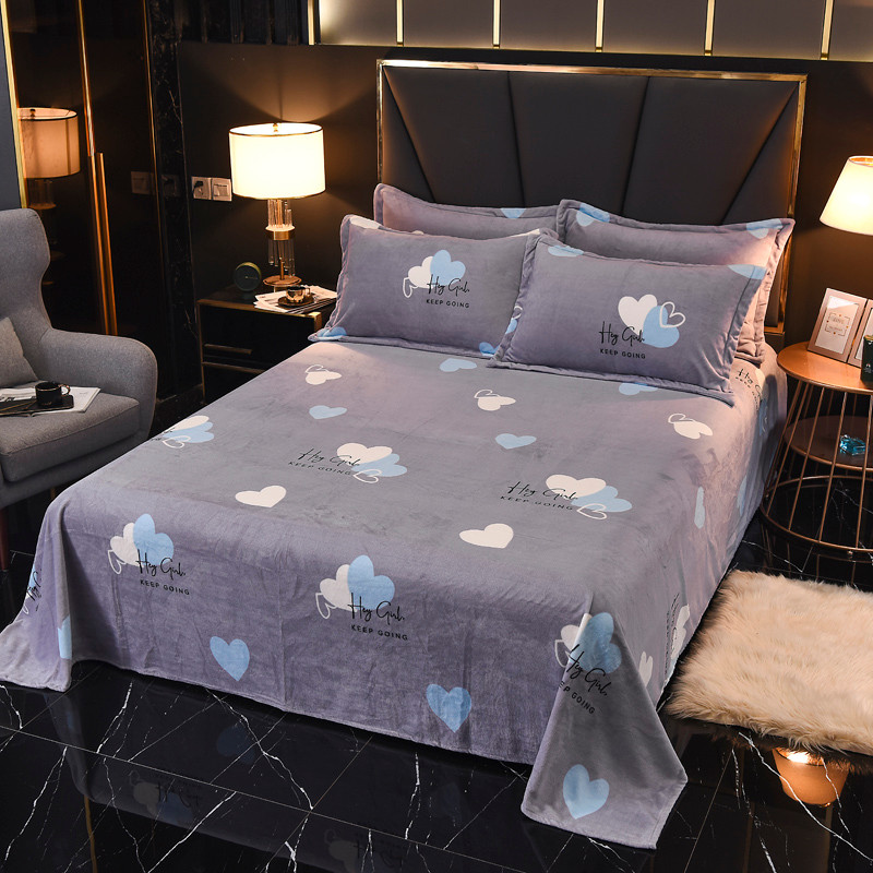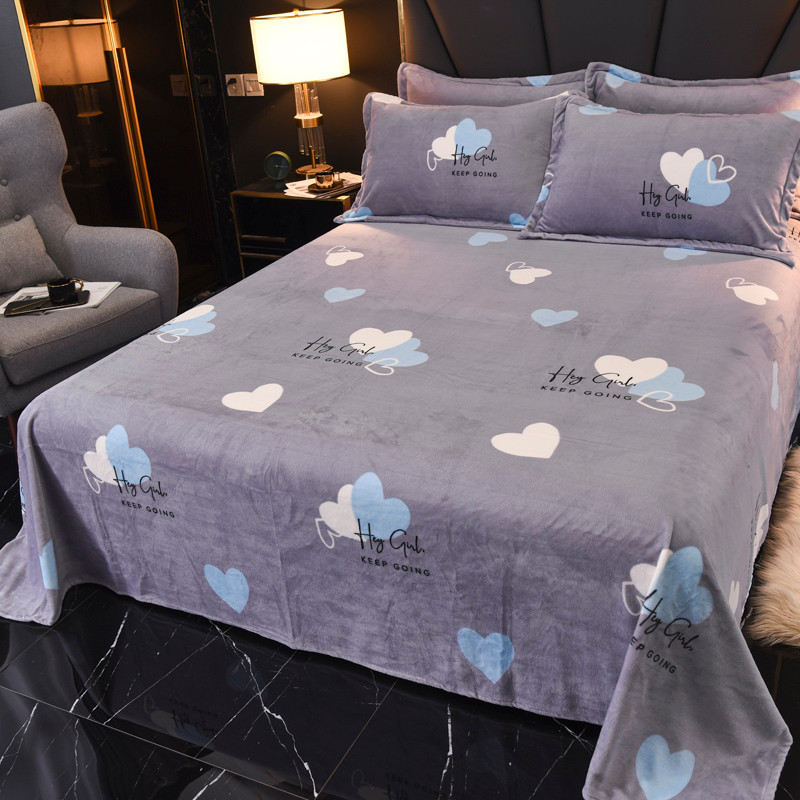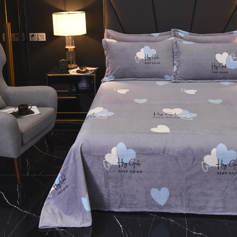 商品名称:锦罗绣 2021新款牛奶绒印花单品床单 爱心-灰