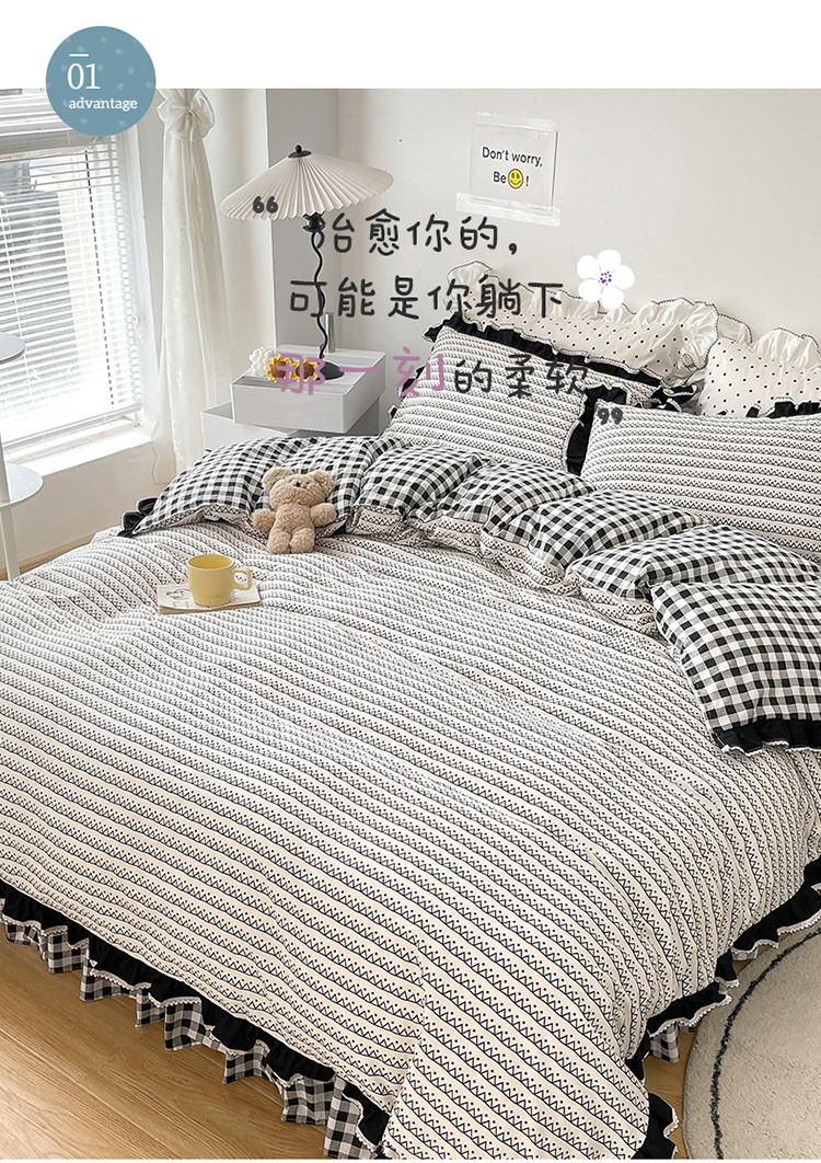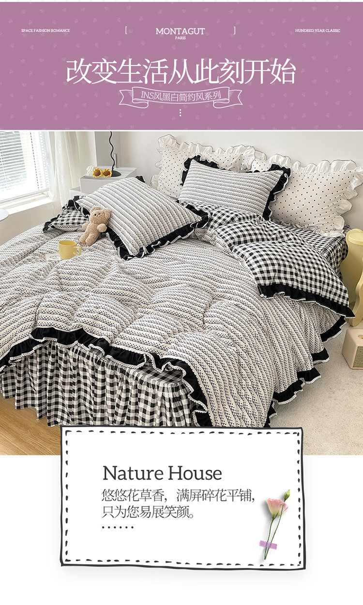 商品名称:婳庭家居 2021新款ins风黑白简约风系列四件套 几何纹