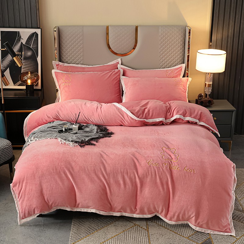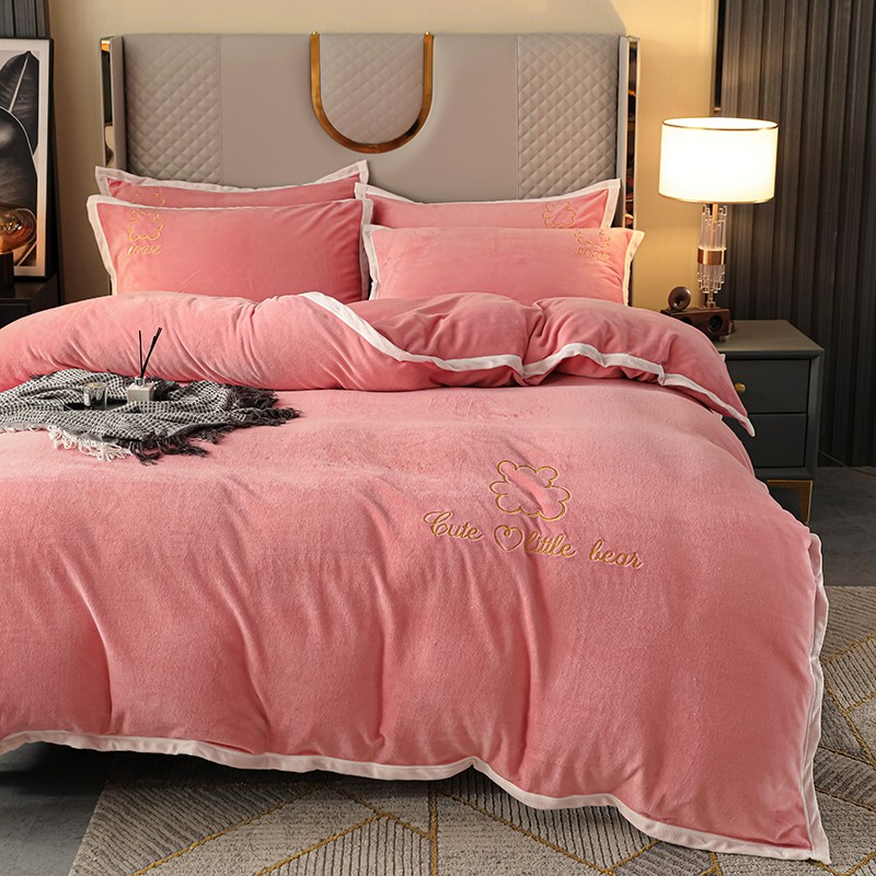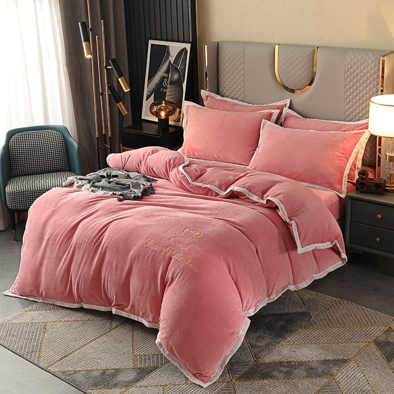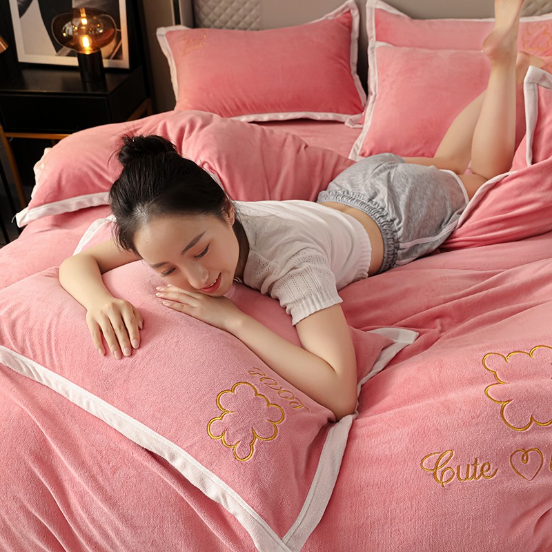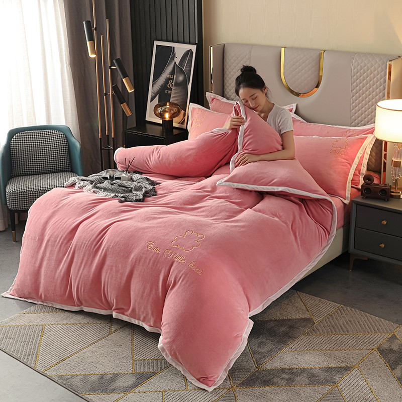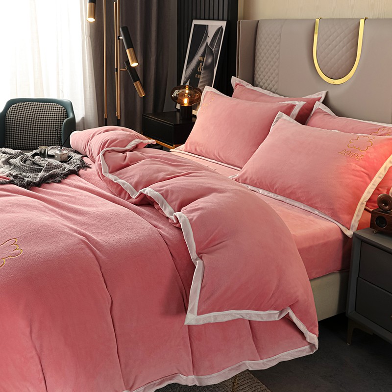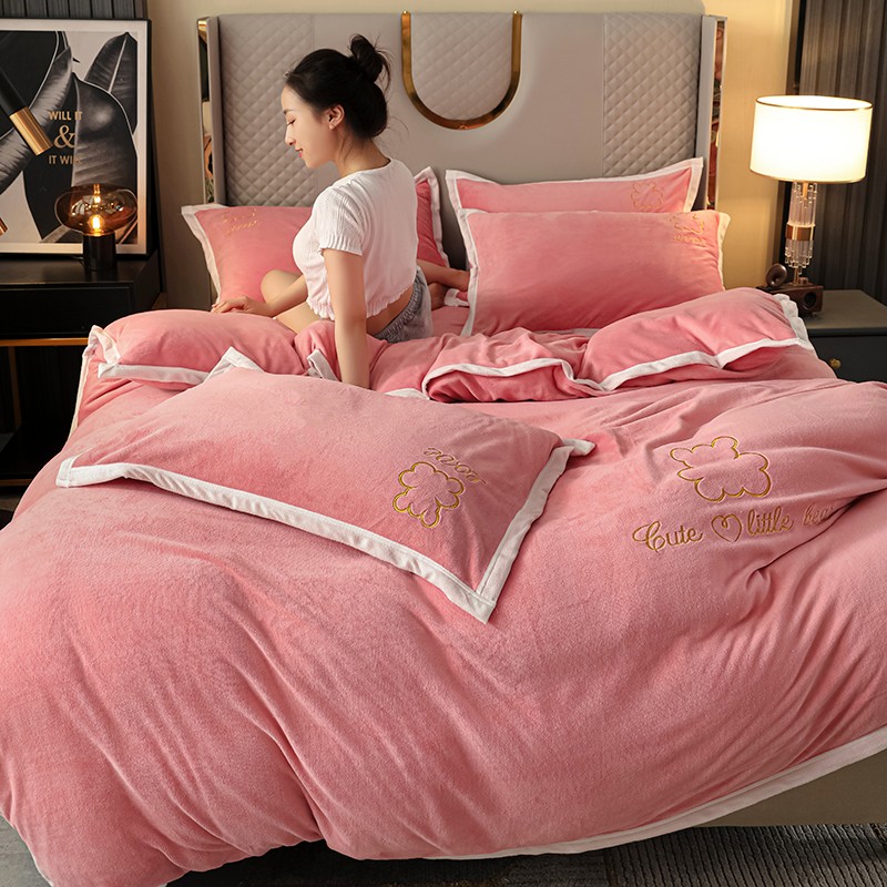 爱洛家纺2021新款牛奶绒四件套 少女-粉