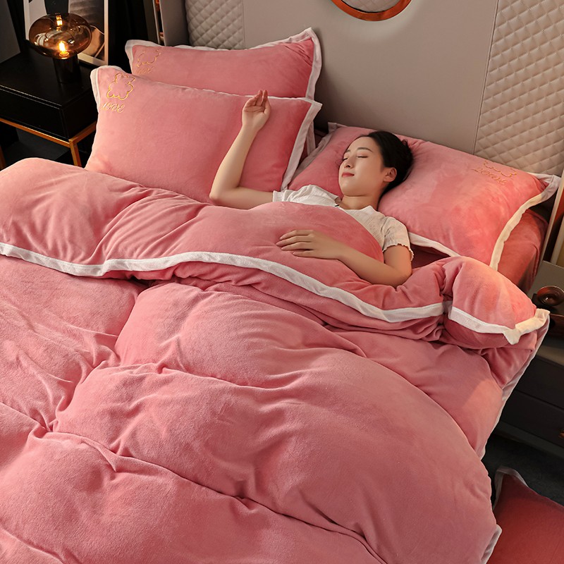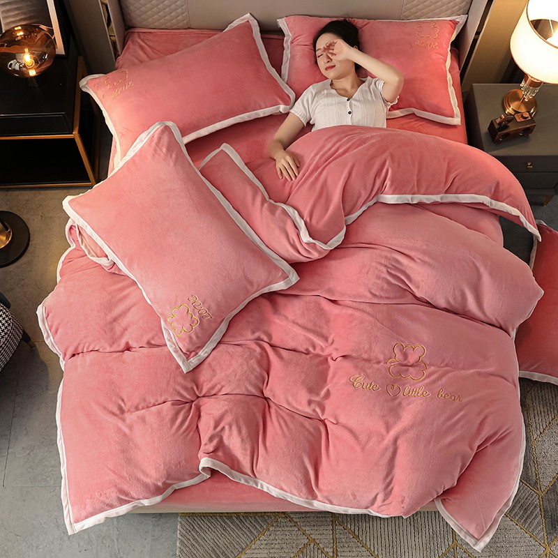 商品名称:爱洛家纺2021新款牛奶绒四件套 少女-粉