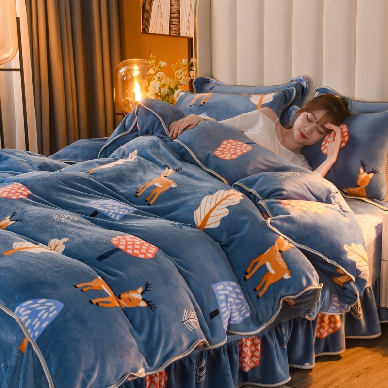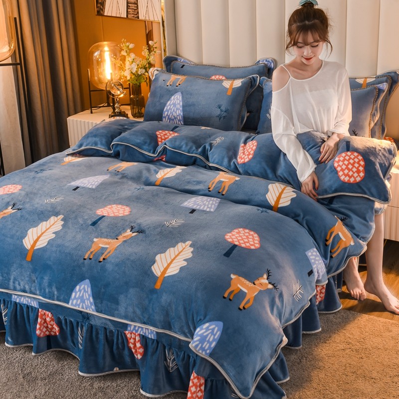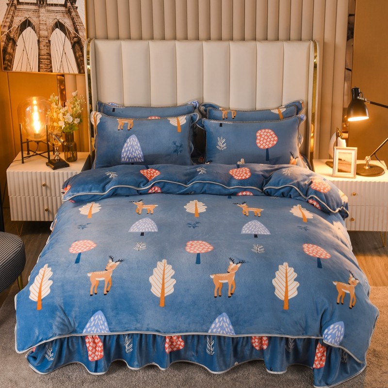商品名称:爱洛家纺2021新款金貂绒四件套 森林与鹿