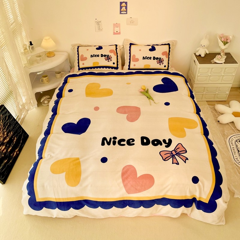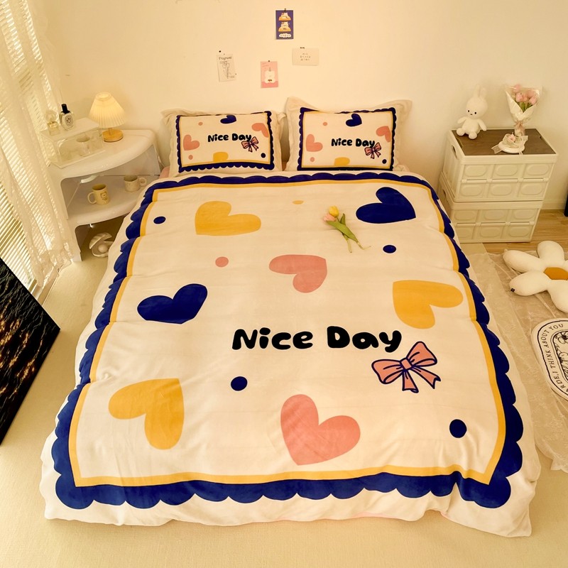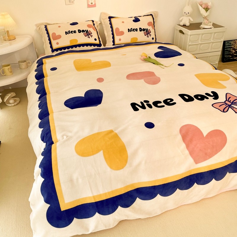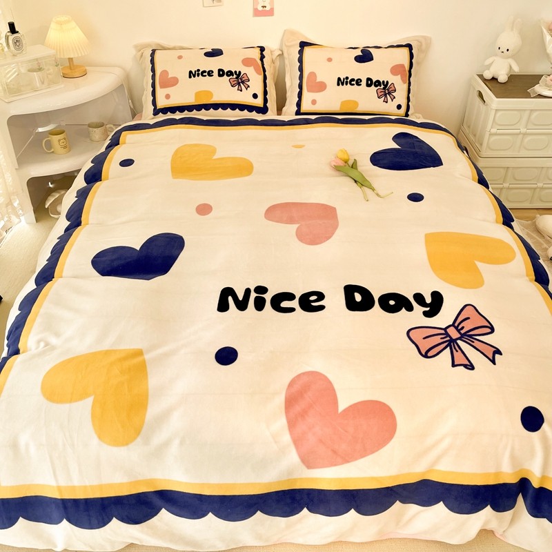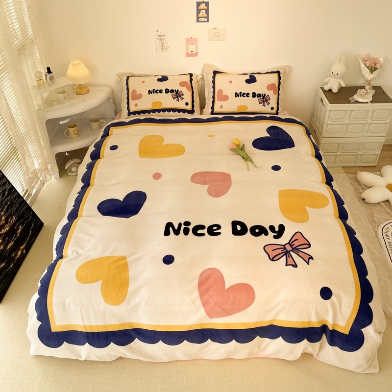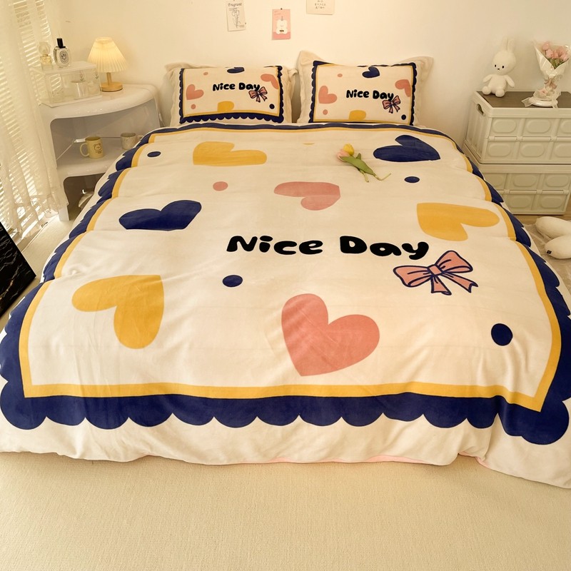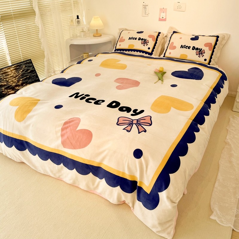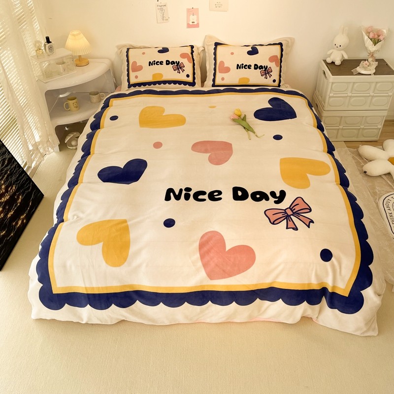商品名称:慕尚 2022新款北欧牛奶绒大版四件套实拍图暖光 小爱心