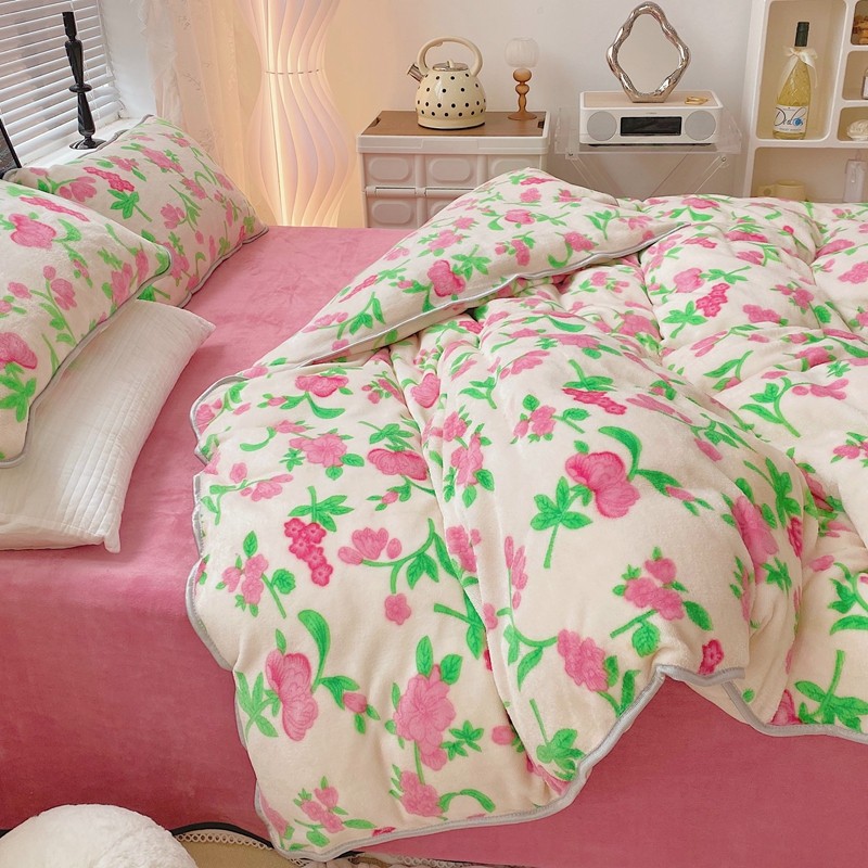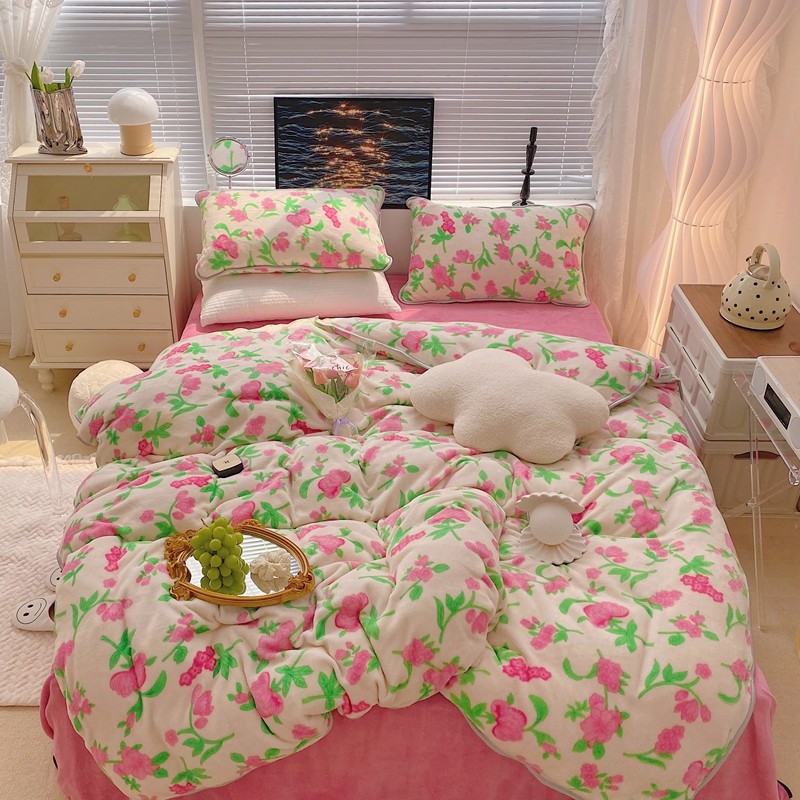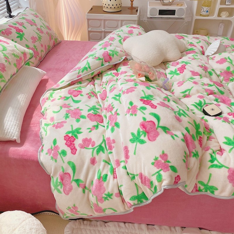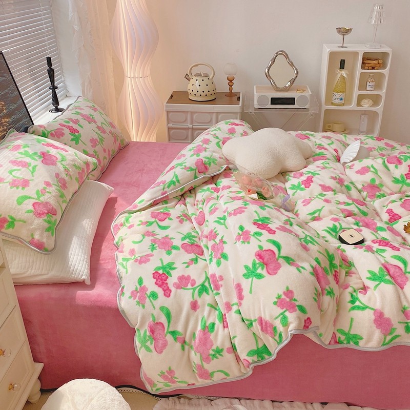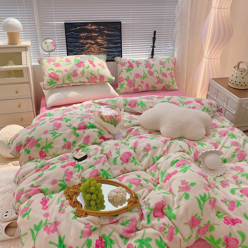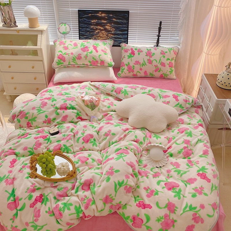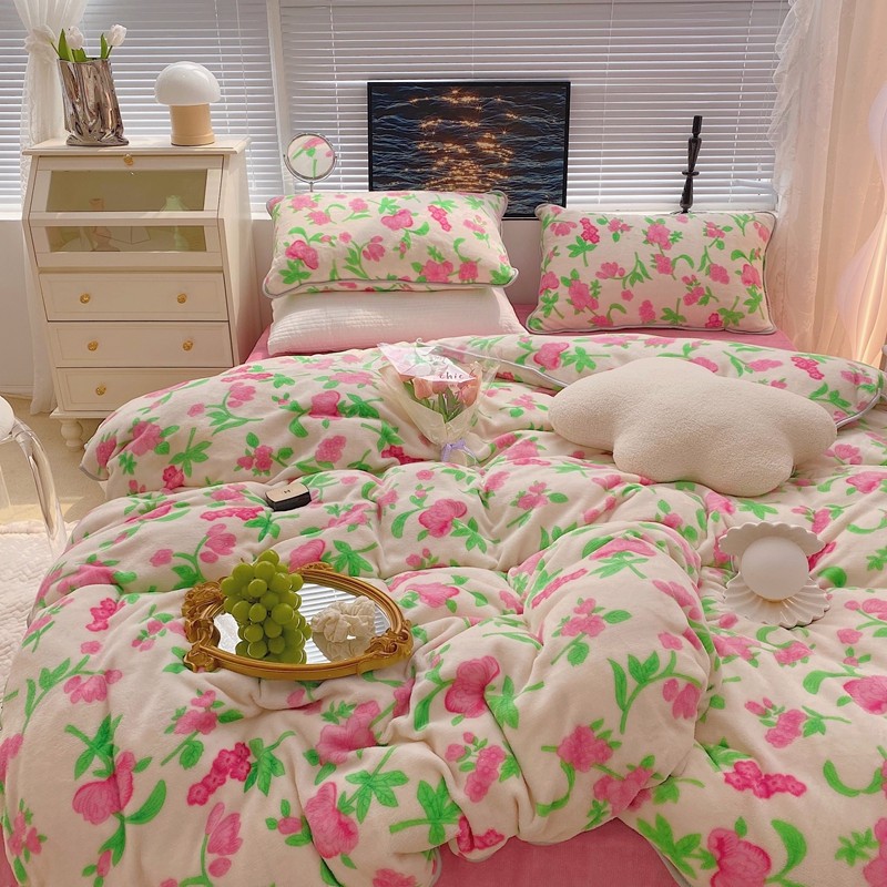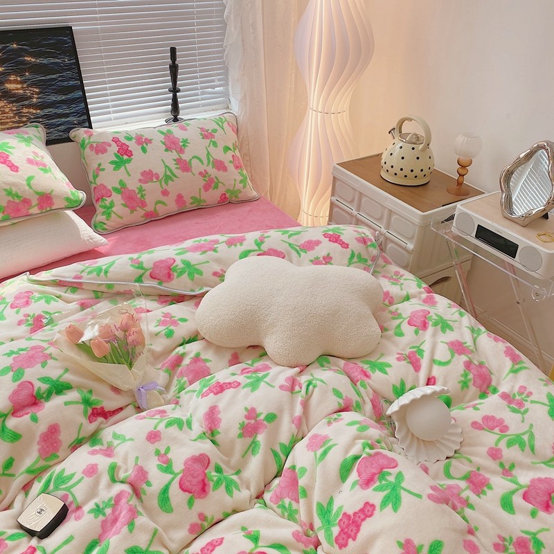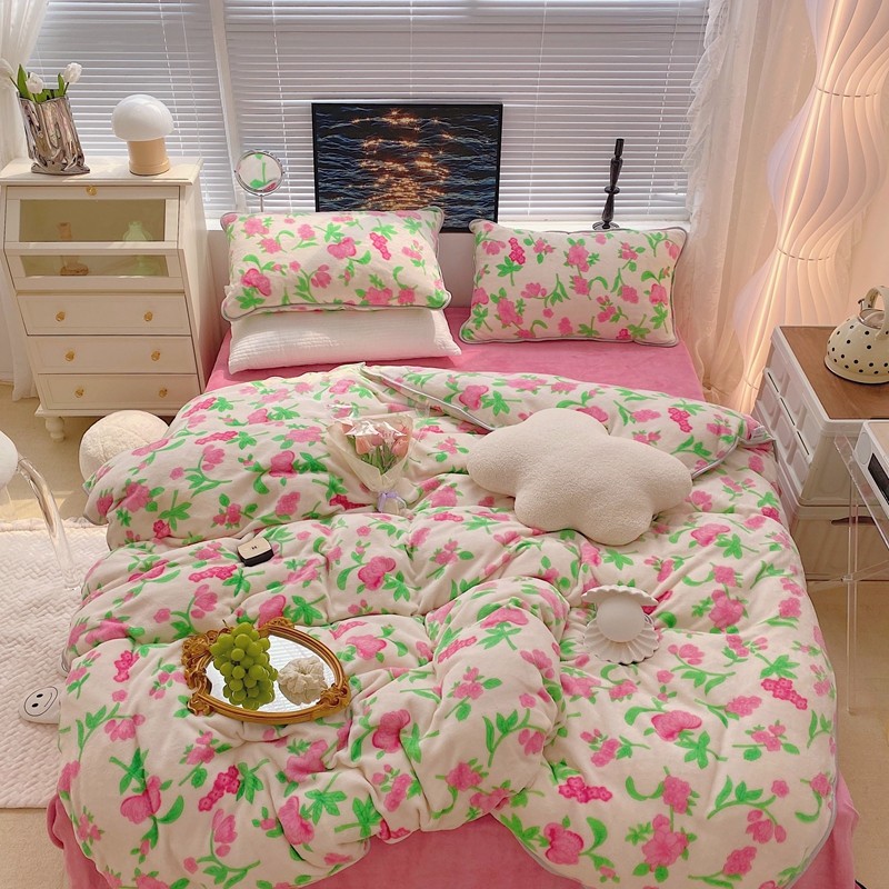 顾里家纺2021新款ins韩国高端保暖牛奶绒四件套春系玫花